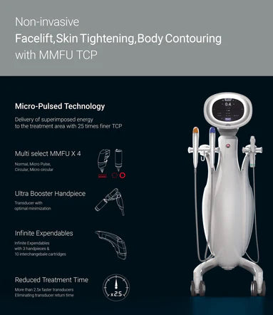 The Ultraformer MPT is an advanced HIFU (High-Intensity Focused Ultrasound) device that uses non-invasive ultrasound technology for skin lifting and tightening. It combines micro and macro-focused ultrasound with pulsed technology to stimulate collagen production and achieve natural-looking results without surgery or downtime.