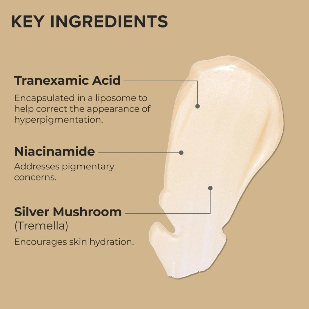 The innovative PATH-3 Technology, encapsulated in a liposome, works diligently to protect against post-inflammatory pigmentation, addressing those stubborn dark spots at their source. Meanwhile, Tranexamic Acid targets hyperpigmentation and uneven skin tone, while Silver Mushroom Extract provides deep hydration and reinforces skin resilience against environmental stressors.