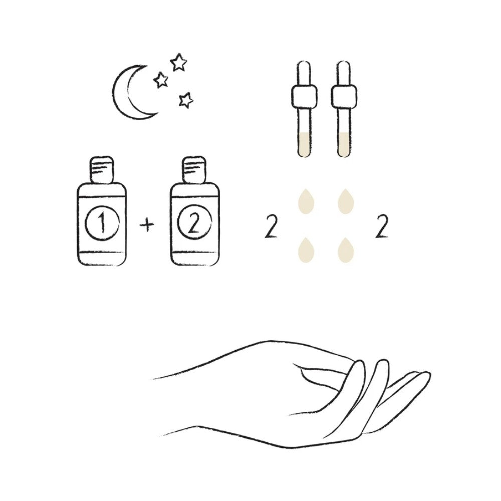 - At night: use on their own. Blend in palm of hand prior to application: - 5 drops EO + 5 drops TE appropriate to your needs.
