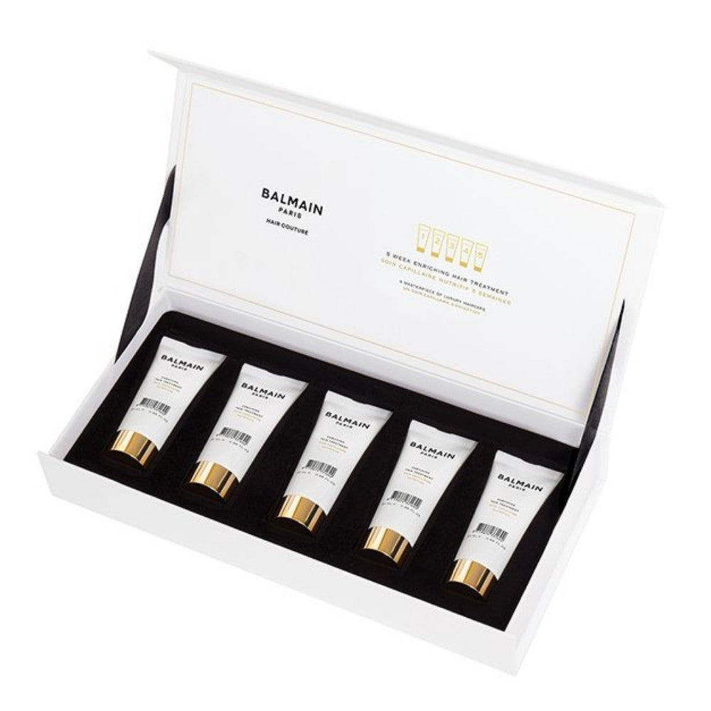 Balmain 5 Week Enriching Hair Treatment is designed as a complete service. All 5 tubes are designed for a single use application. For most optimum results use as a 5 Week Enriching Hair Treatment to ensure that all new connections within the protein chain are sealed.