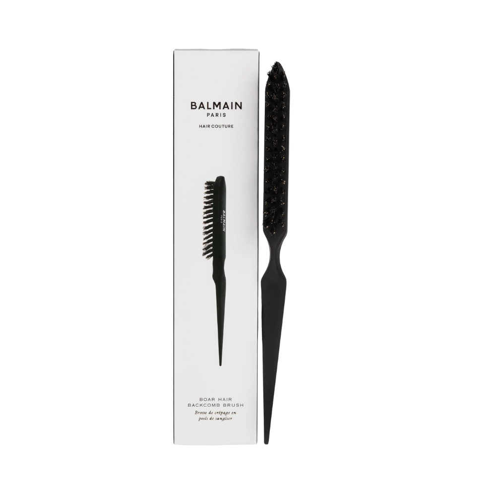 The Balmain Black Boar Backcomb Hairbrush features fine teeth crafted from 100% wild boar bristles, specifically designed to create volume at the roots through effective backcombing techniques. Handcrafted using traditional methods, this premium styling tool combines functionality with Balmain's signature luxury.