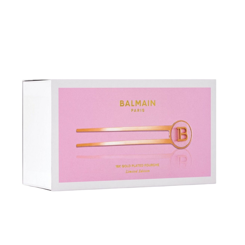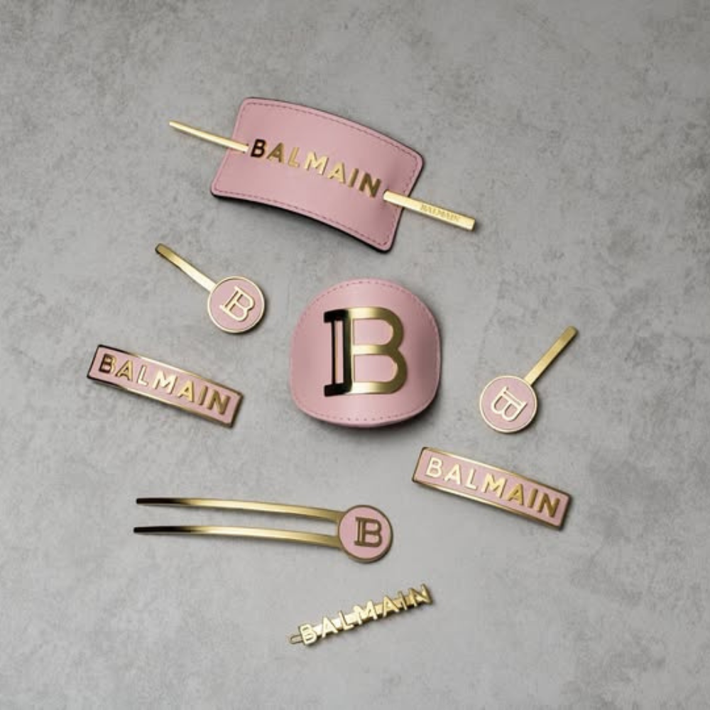 The Limited Edition Fourche is inspired by the design of the newly updated Balmain Logo. This exclusive hair accessory adds a stylish finish to any look, with its pink Napa leather design making it a true summer statement piece.