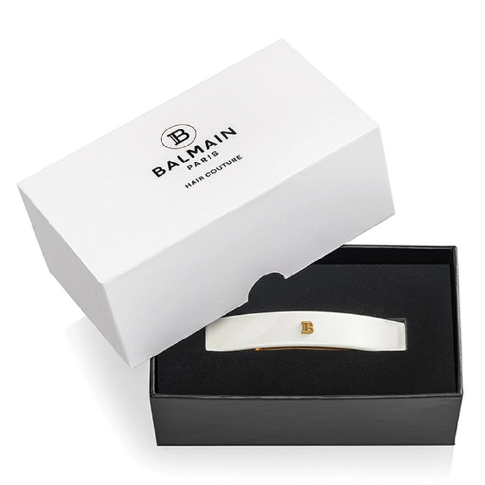 Balmain Hair Barrette Medium is a luxurious handmade hair accessory with 14K gold plated B. The Barrette pour Cheveux M part of the iconic Les Accessoires collection, is suitable for any occasion and instantly adds a touch of class to every hairstyle. Features a genuine French clip.