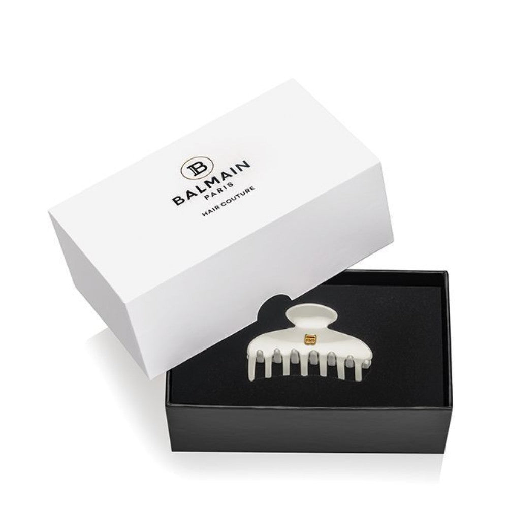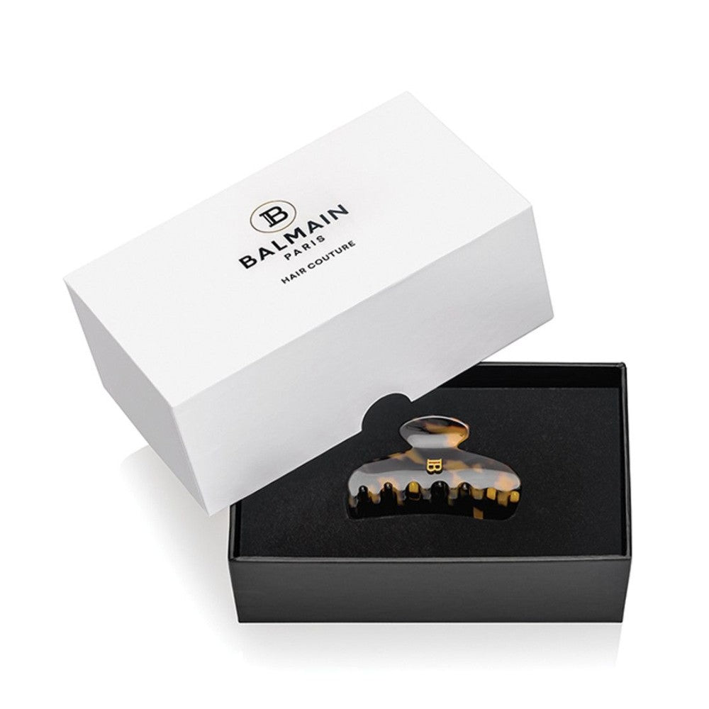 Balmain Hair Clip Small is a small handcrafted claw clip made from durable cellulose acetate and designed with the Balmain’s signature 14K gold plated “B” logo.