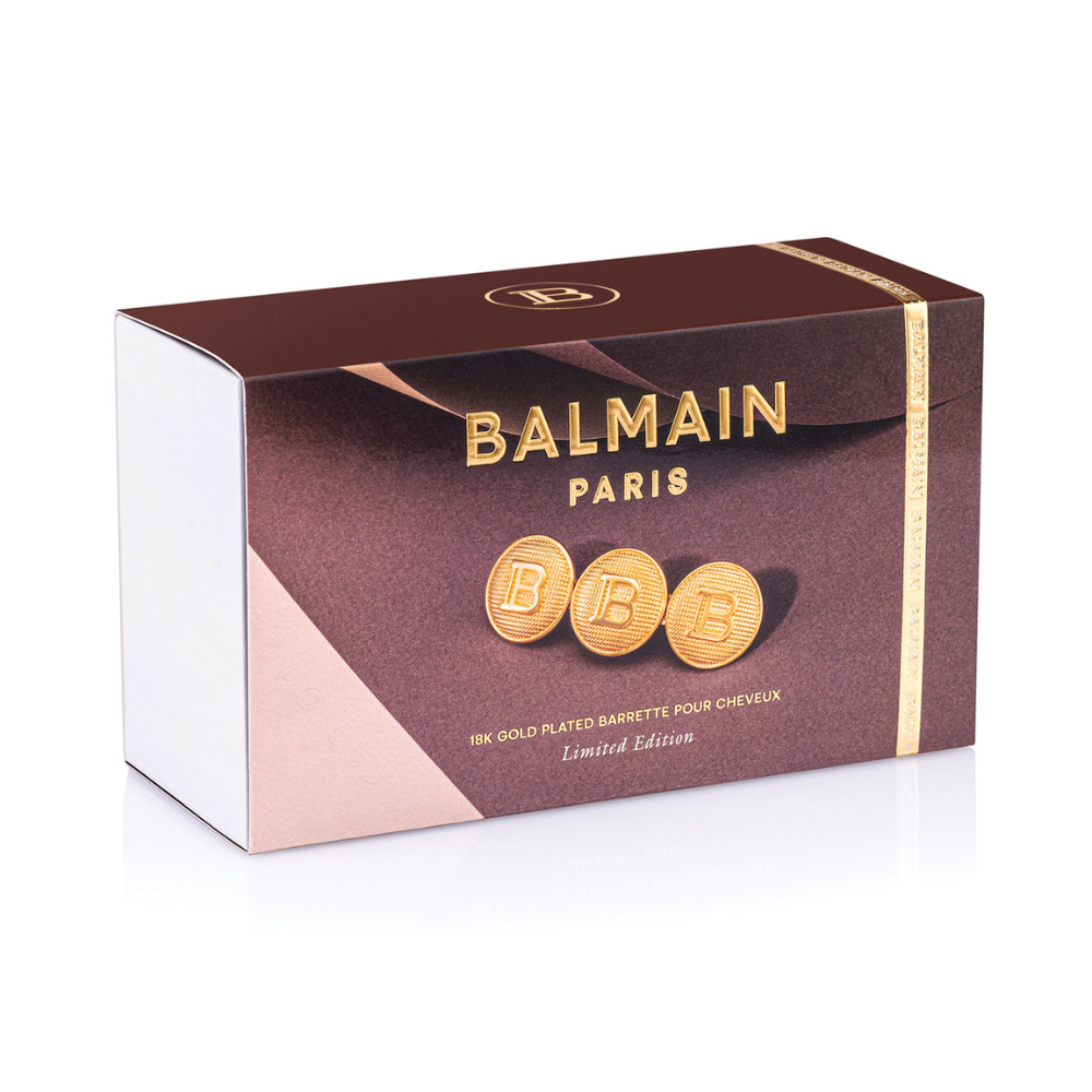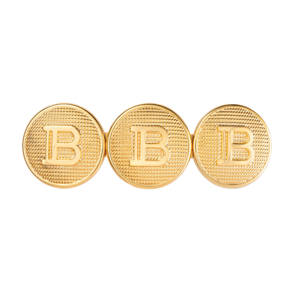 The Limited Edition Golden Barrette is inspired by the iconic buttons of Balmain signature blazers. This luxurious hair accessory is crafted with an 18-karat gold-plated finish that adds a touch of glamour to any hairstyle with minimal effort.