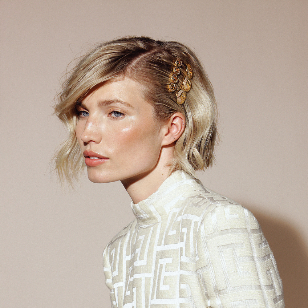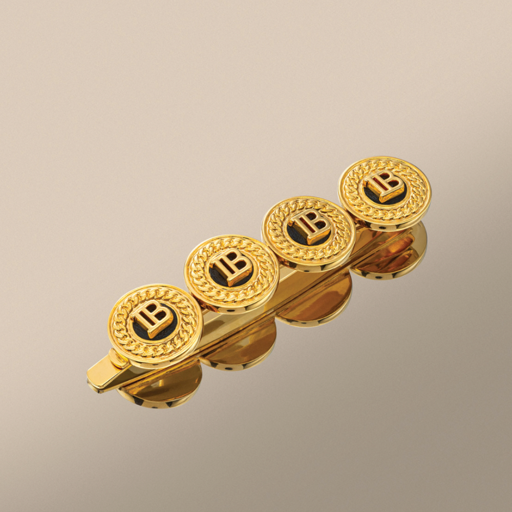 Perfect for sweeping loose tresses away from the face, this versatile hair accessory adds a touch of sophistication to any hairstyle. The Limited Edition Golden Button Slide makes a refined statement whether worn for everyday elegance or special occasions, reflecting Balmain's commitment to luxury craftsmanship.