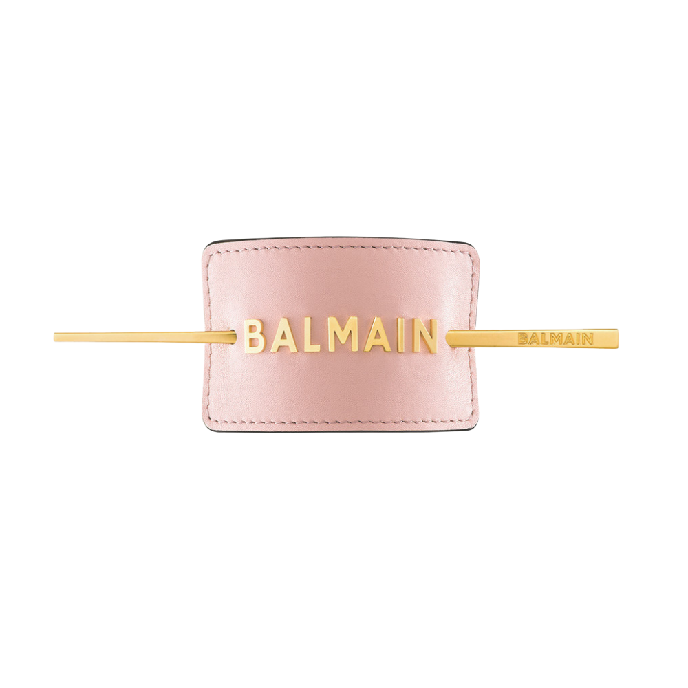 An exclusive iconic hair accessory inspired by the Balmain Spring-Summer 2020 fashion collection. Add instant recognition to any look with this Pink Hair Barrette. Made of high quality genuine leather, the Hair Barrette is designed with 18k gold plated hair pin and Balmain logo. Great for ponytails or to create effortless up do’s.