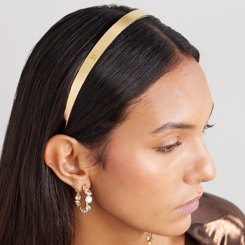 The Riviera Limited Edition Small Gold Headband is a sophisticated statement hair accessory inspired by the decadent lifestyle of the French Riviera. This exquisite headband is handcrafted using traditional techniques and features an 18K gold-plated finish with a hand-polished surface that perfectly attracts and reflects light.