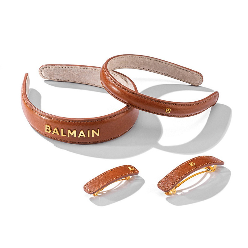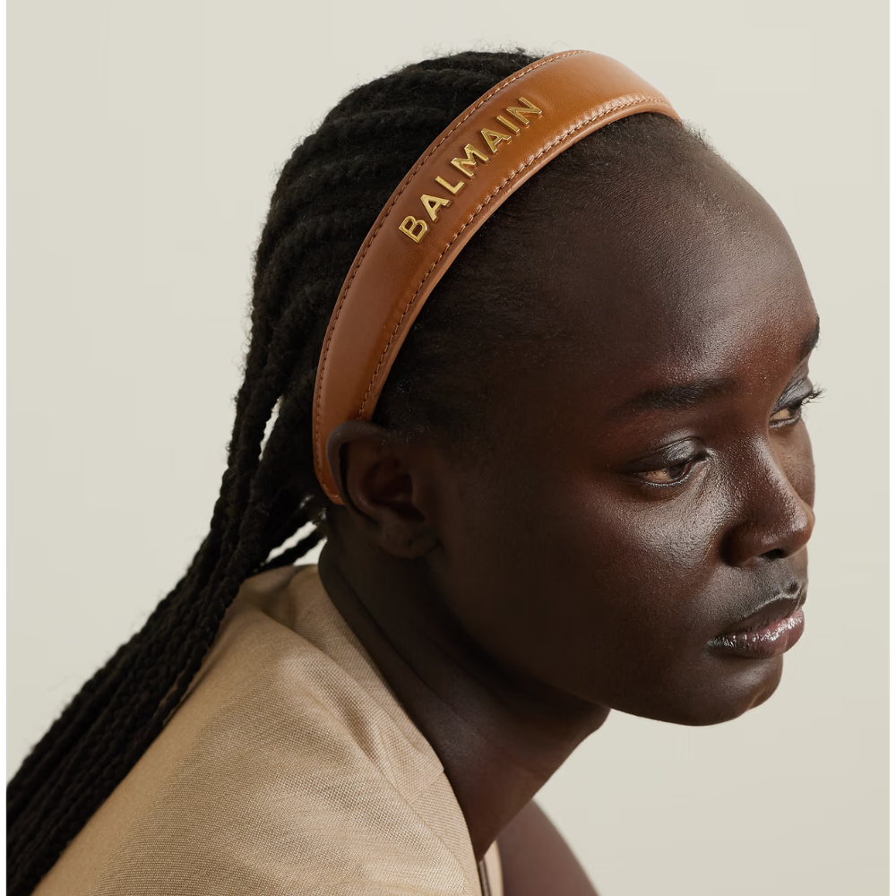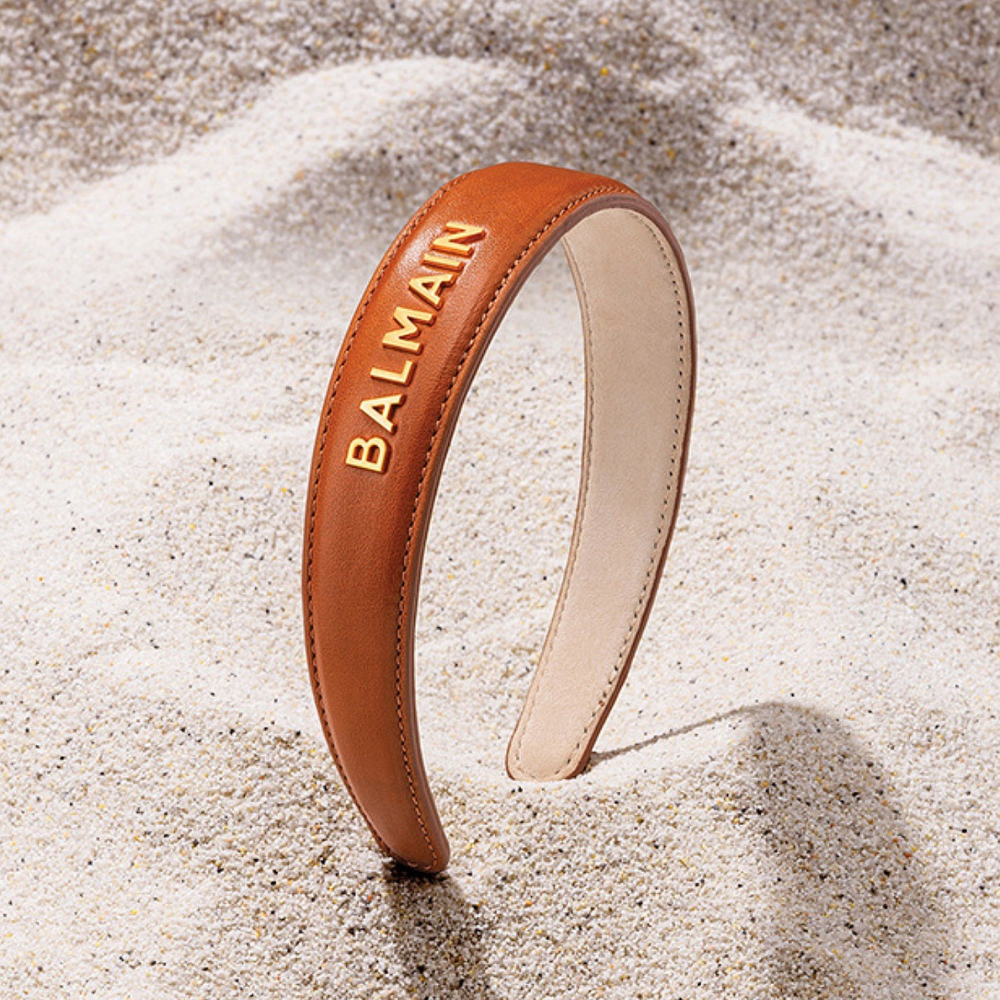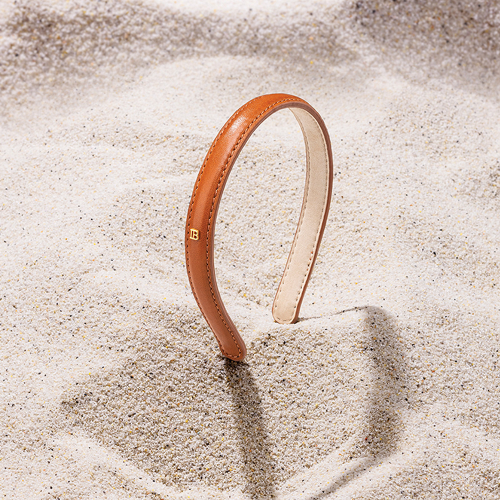 The Balmain Riviera Luxury Leather Headband is an all-time classic hair accessory that takes inspiration from the French Riviera. Crafted from genuine cognac-coloured Napa leather and adorned with an 18K gold Balmain Hair logo, this elegant headband features a nude-coloured nubuck inside to provide extra grip onto the hair.