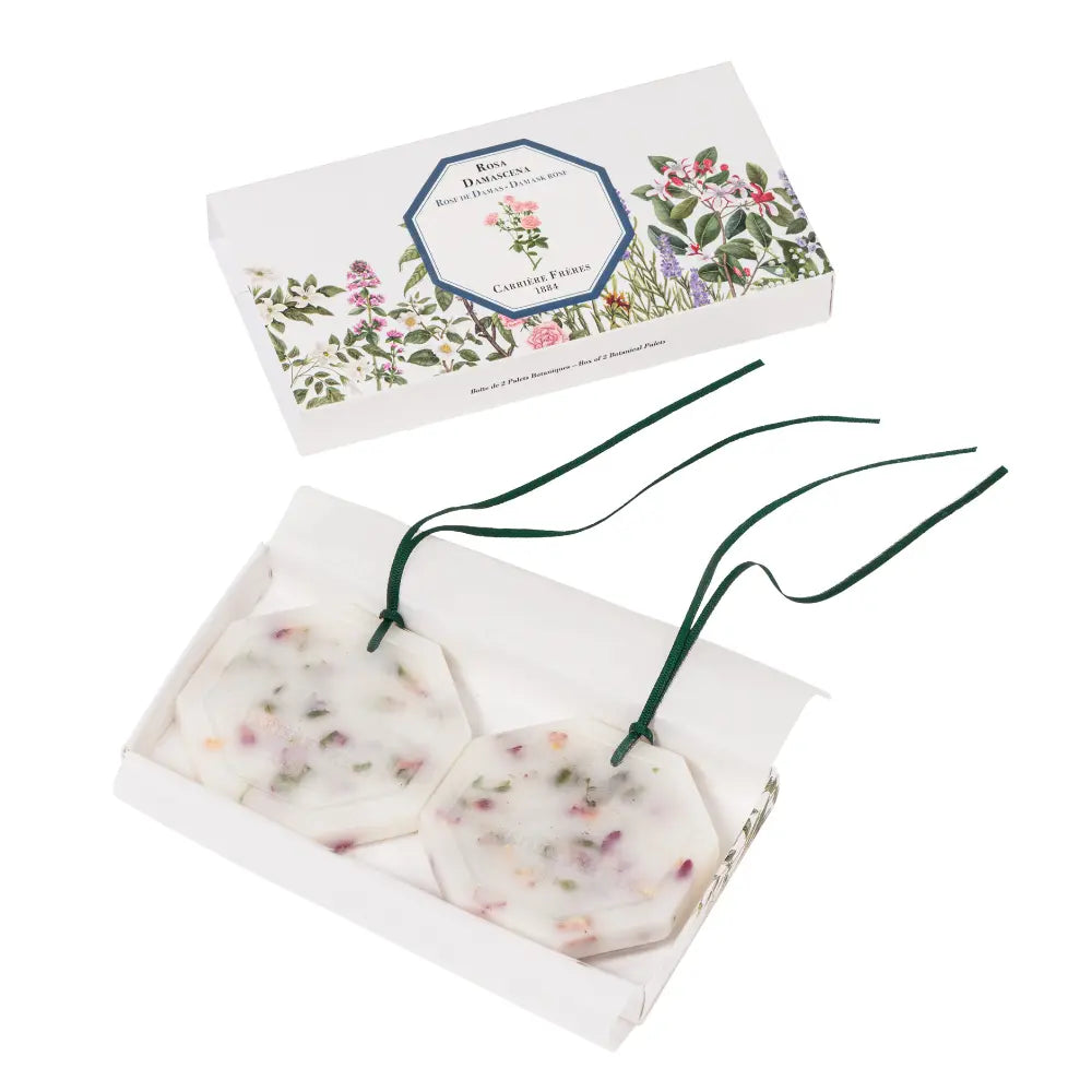 Carrière Frères Damask Rose Botanical Palet is a luxurious and eco-friendly fragrance solution for your wardrobe or drawers. Made with only natural ingredients, this palet (meaning ‘disk’ in French) emanates a gentle and romantic scent that will uplift your senses and leave your clothes smelling fresh.