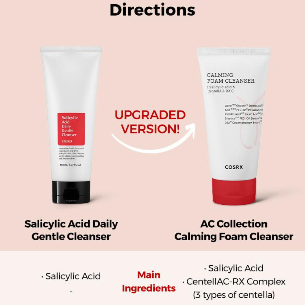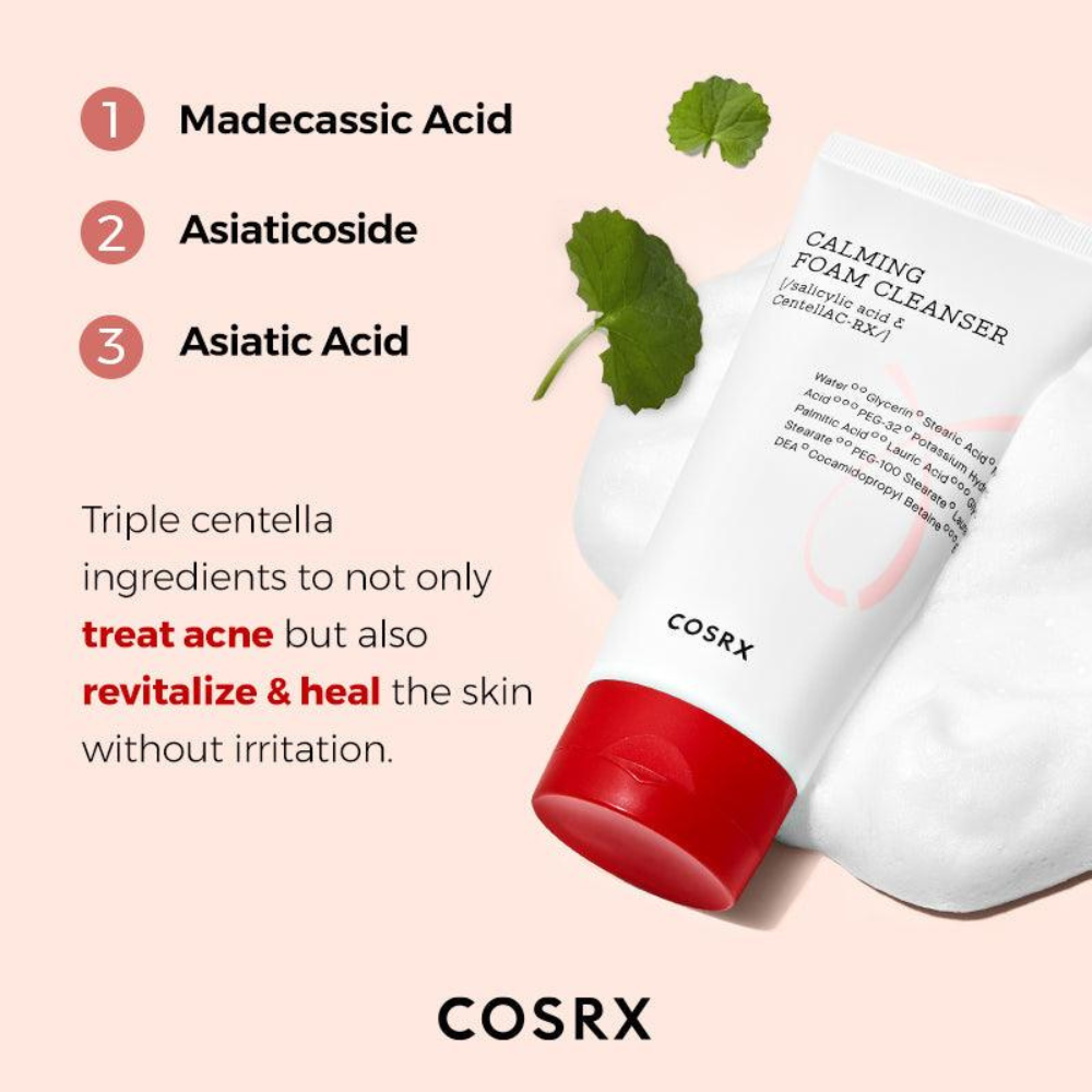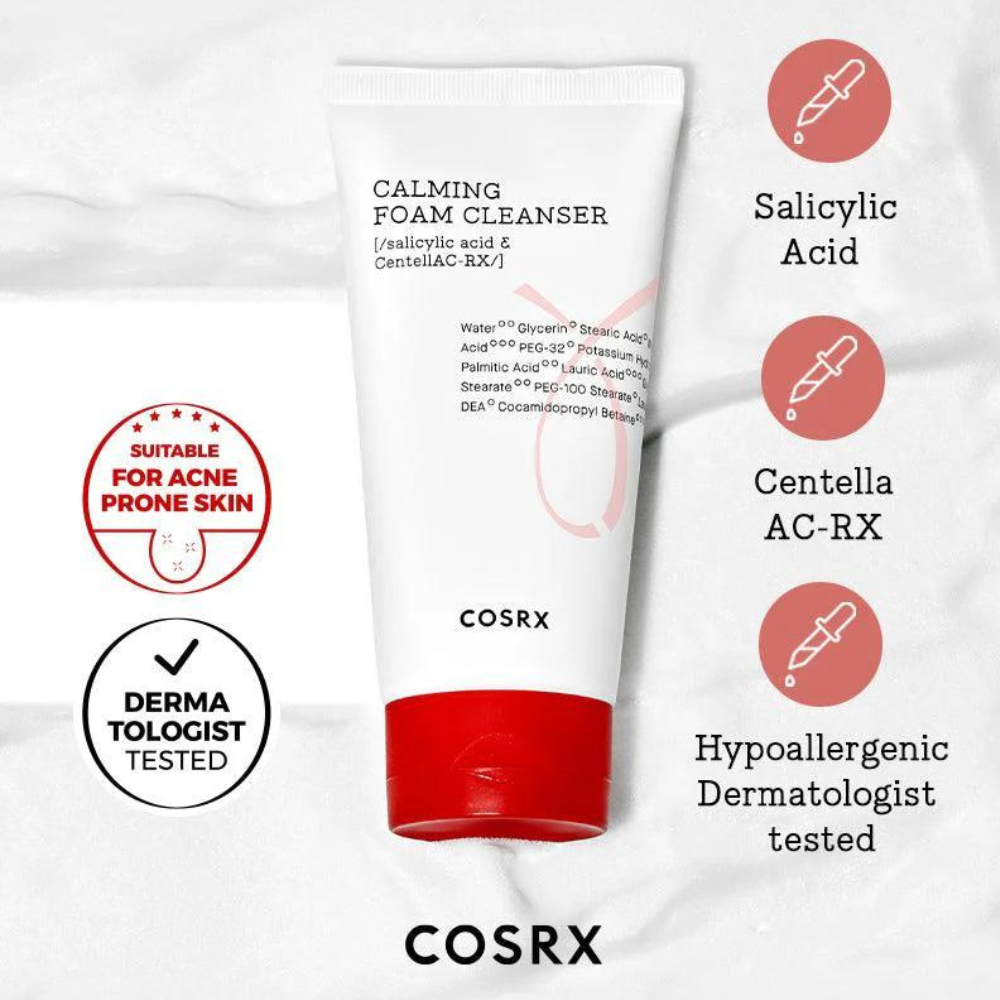 COSRX AC Collection Calming Foam Cleanser is a smart, daily acne cleanser that provides both freshness and moisture with its gentle foam.