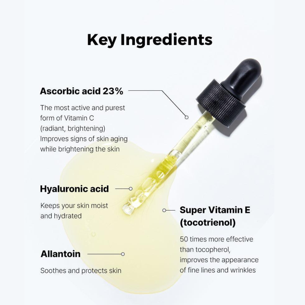 - Features 23% pure stabilised vitamin C to target hyperpigmentation and uneven skin tone