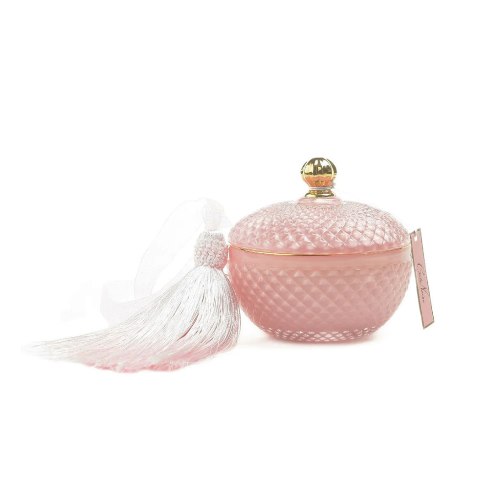 The Art Deco Candle Pink & Gold Pink Champagne from Cote Noire embodies sophisticated elegance with its luxurious Pink Champagne fragrance. This limited-edition candle combines sparkling notes of strawberry with rich middle notes of blackberry, finishing with lingering base notes of Pinot Noir grape - a crisp, fruity scent that transforms any day into a celebration.