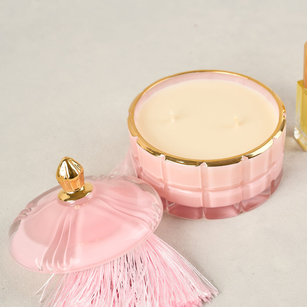 2. Light the double cotton wick and enjoy the celebratory Pink Champagne fragrance.