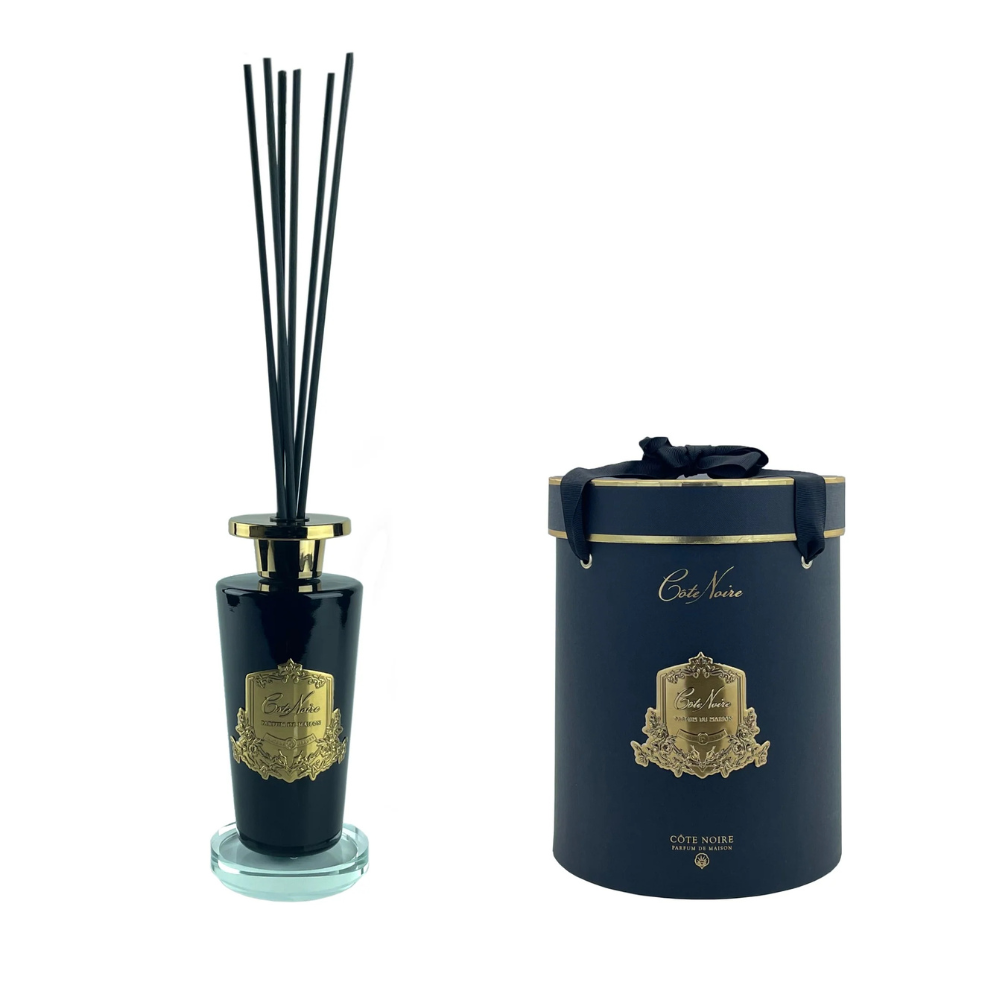 Engineered with cutting-edge technology, the Cote Noire Diffuser stands apart with its highly absorbent reeds that guarantee a consistent and even fragrance distribution for up to two months. These advanced reeds are designed to retain their color and shape throughout their lifespan, and uniquely, they do not require turning—substantially reducing the risk of drips or spills on your cherished belongings.
