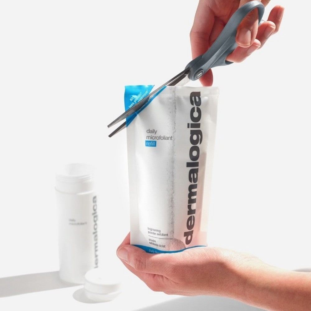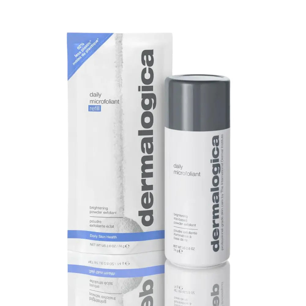 - Gently massage Dermalogica Daily Microfoliant onto a damp, cleansed face in circular motions to refine and exfoliate.
