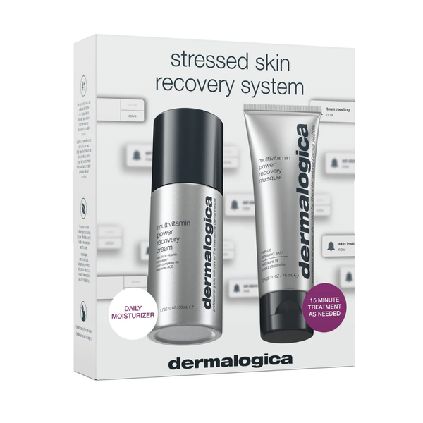 Transform stressed, compromised skin with the Dermalogica Stressed Recovery System. This powerful duo combines the NEW multivitamin power recovery cream and the beloved multivitamin power recovery masque to create a comprehensive treatment system. Working in harmony, these products deliver immediate nourishment while fighting environmental stressors, boosting skin resilience, and preventing premature signs of ageing. This system not only restores skin health but creates a protective barrier against future damage.