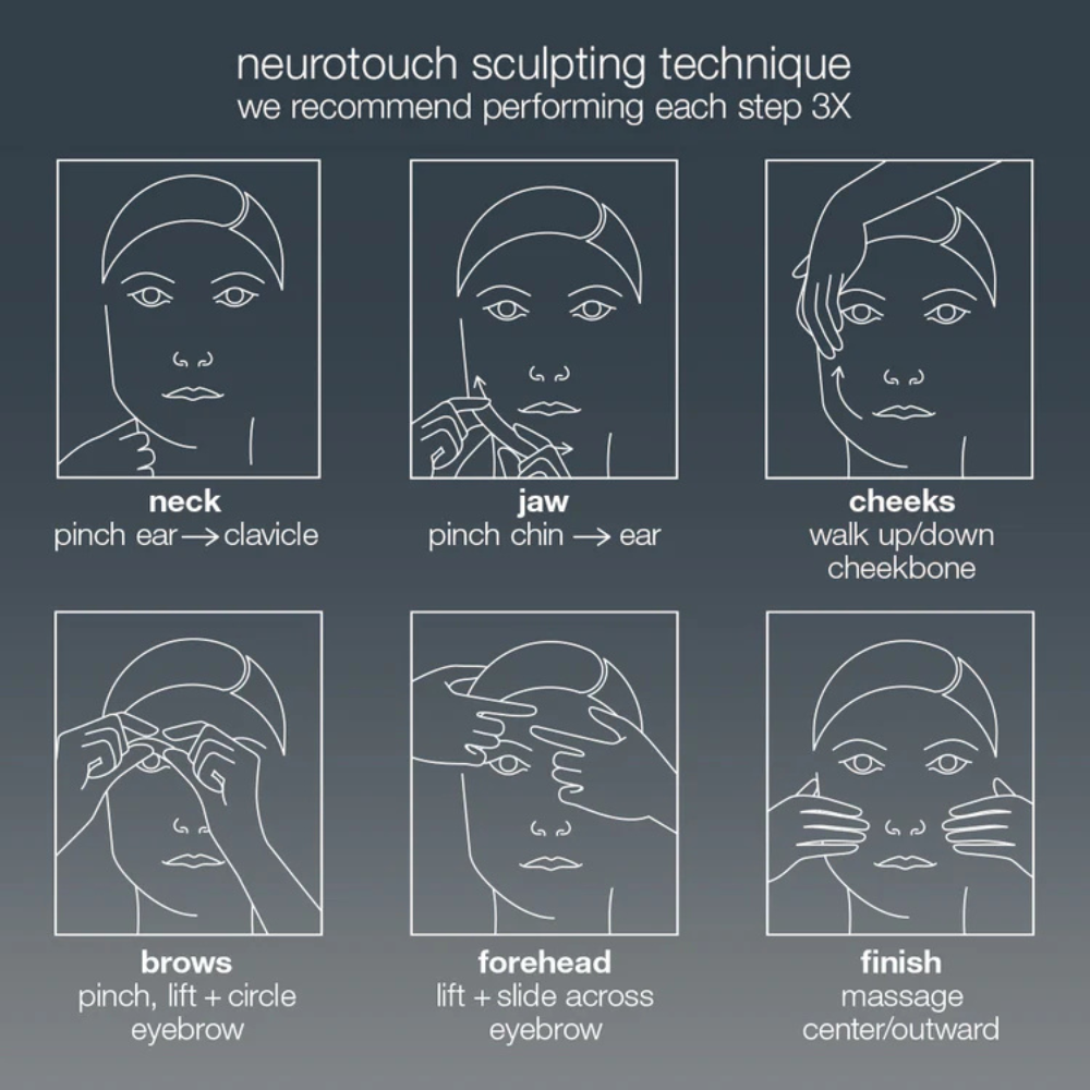 - Use the NeuroTouch sculpting technique to enhance the skin-mind connection whilst applying.