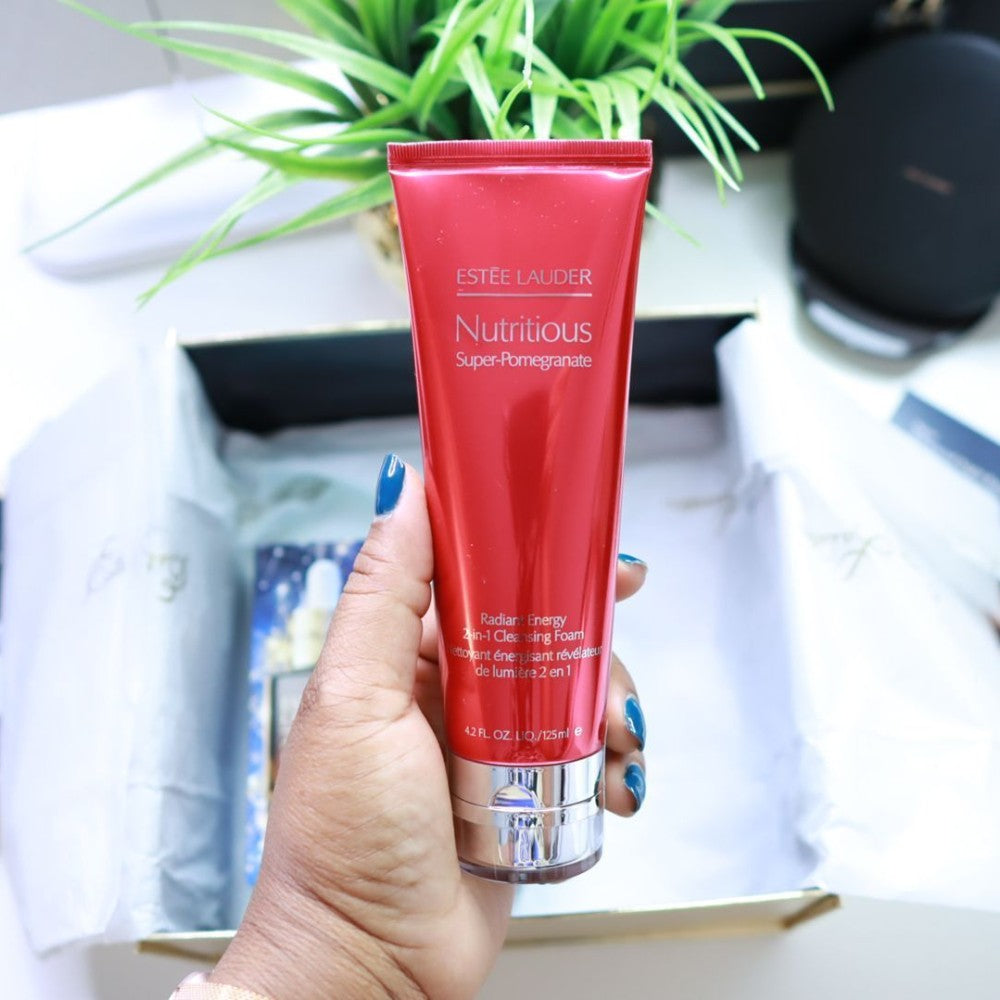 - For an everyday cleanse, foam a small amount of Estée Lauder Nutritious Super-Pomegranate Radiant Energy 2-in-1 Cleansing Foam and massage over skin.
