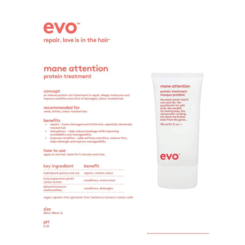 Evo Mane Attention Protein Treatment is available in: 30ml, 150ml