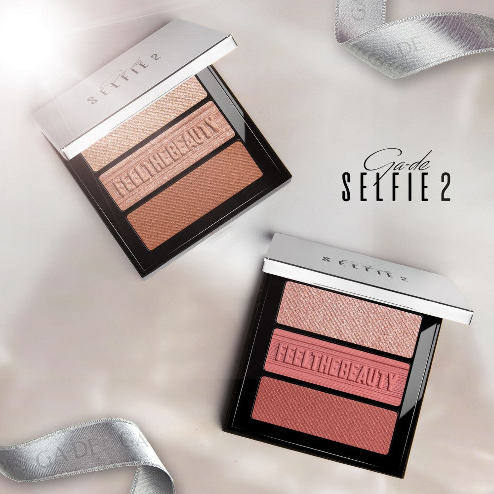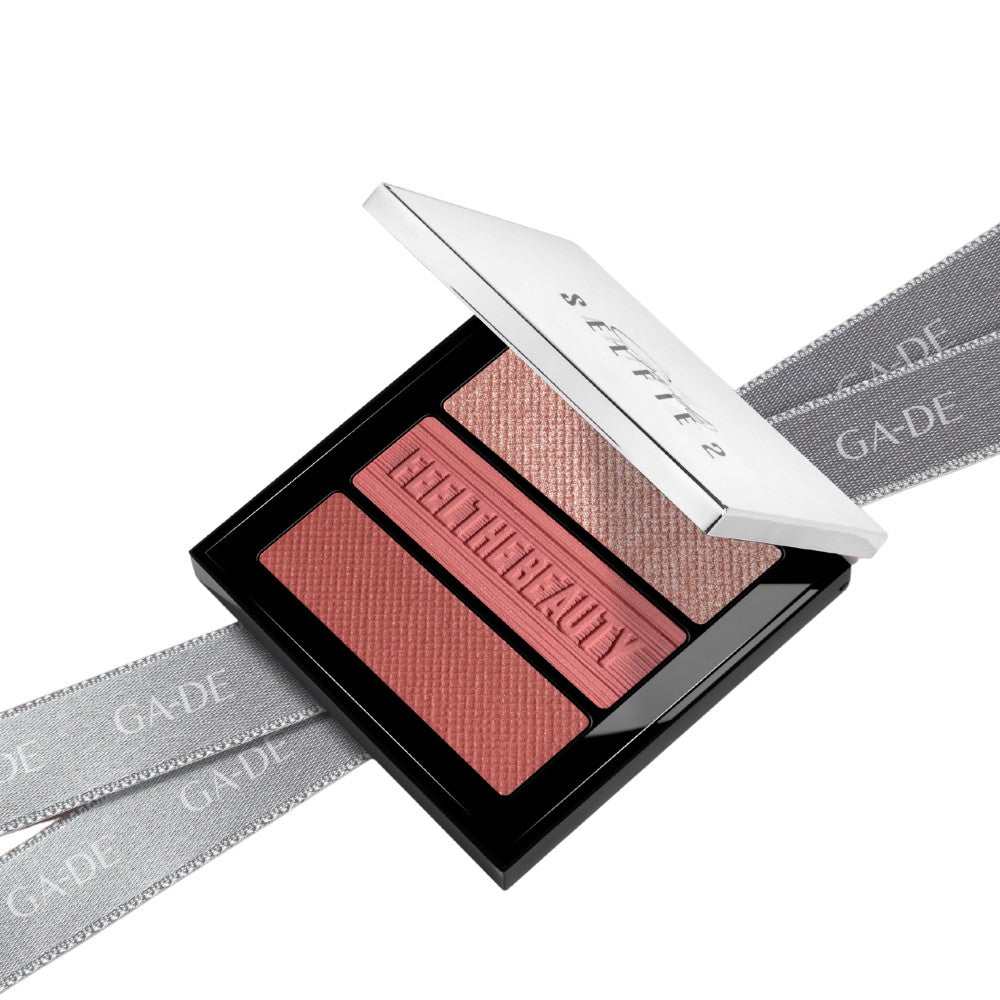 GA-DE Selfie Blush & Highlighter Trio Palette is a versatile three-in-one compact that brings sculpting, contouring, and highlighting together in perfect harmony. This innovative palette features two buildable shades of blush and one shimmer for finishes that range from matte to subtle sheen, offering a healthy glow and radiant luminosity in a single step.
