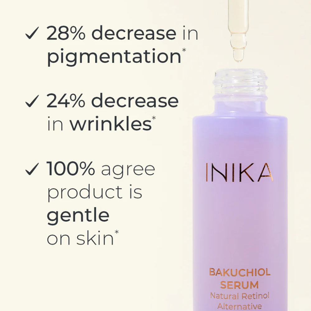 1. After cleansing, apply 2–3 drops of Bakuchiol Serum to the face and neck.