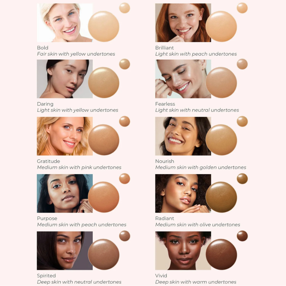2. Start with a small amount and blend outward from the centre of the face using a foundation brush, sponge, or fingertips.