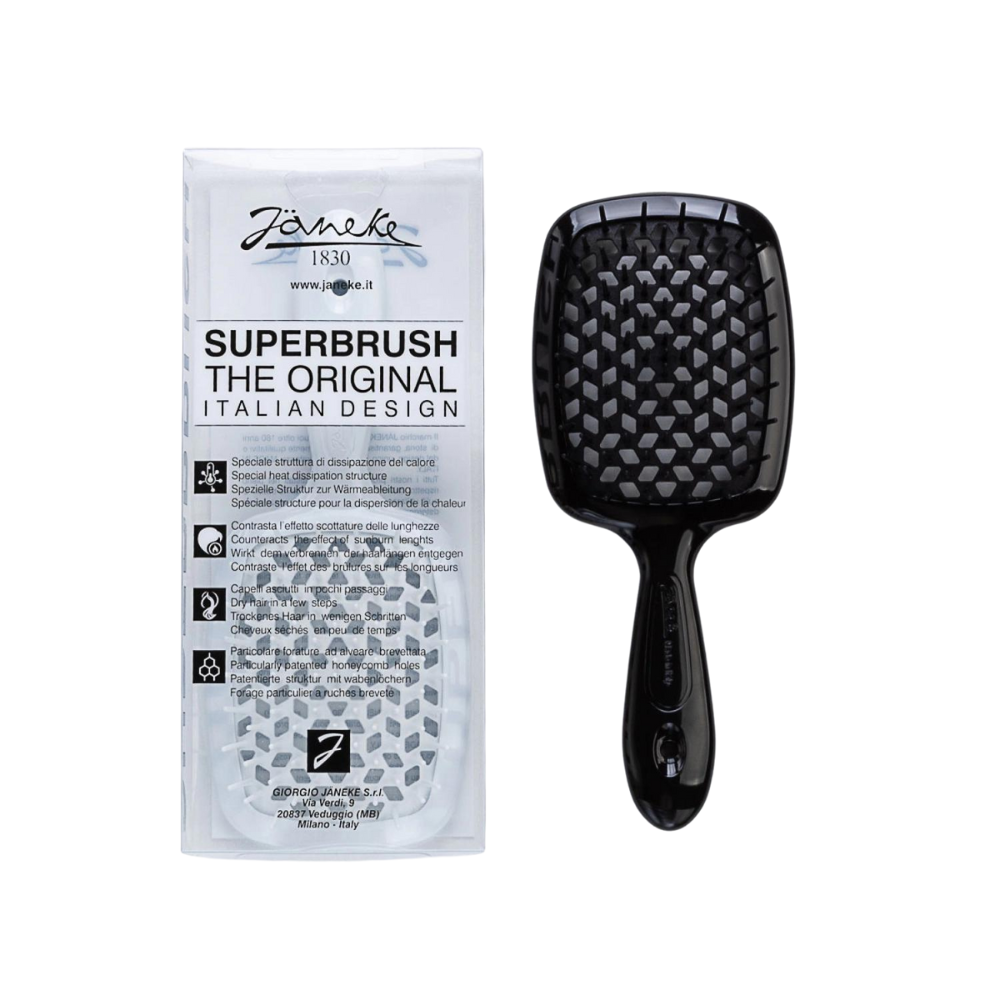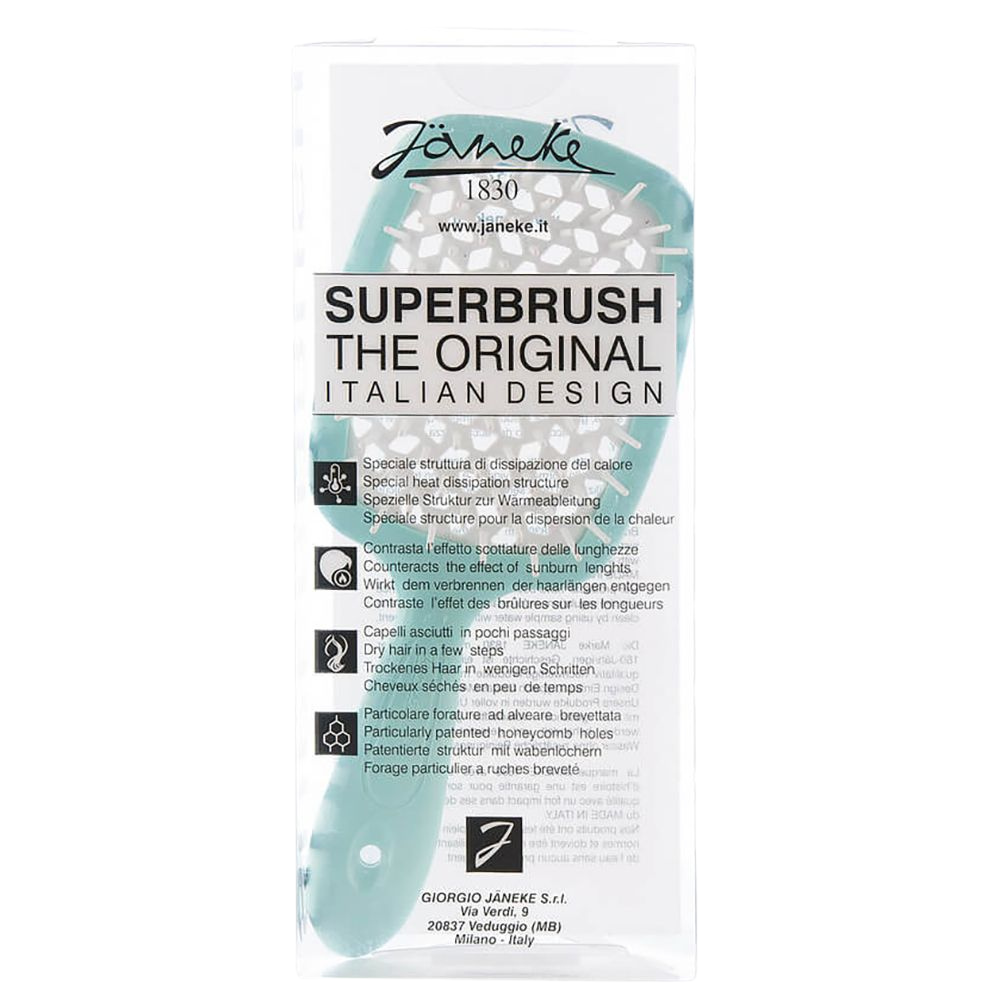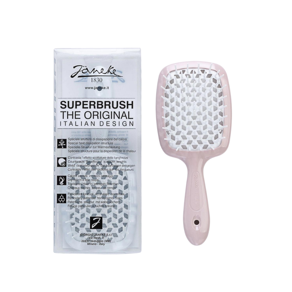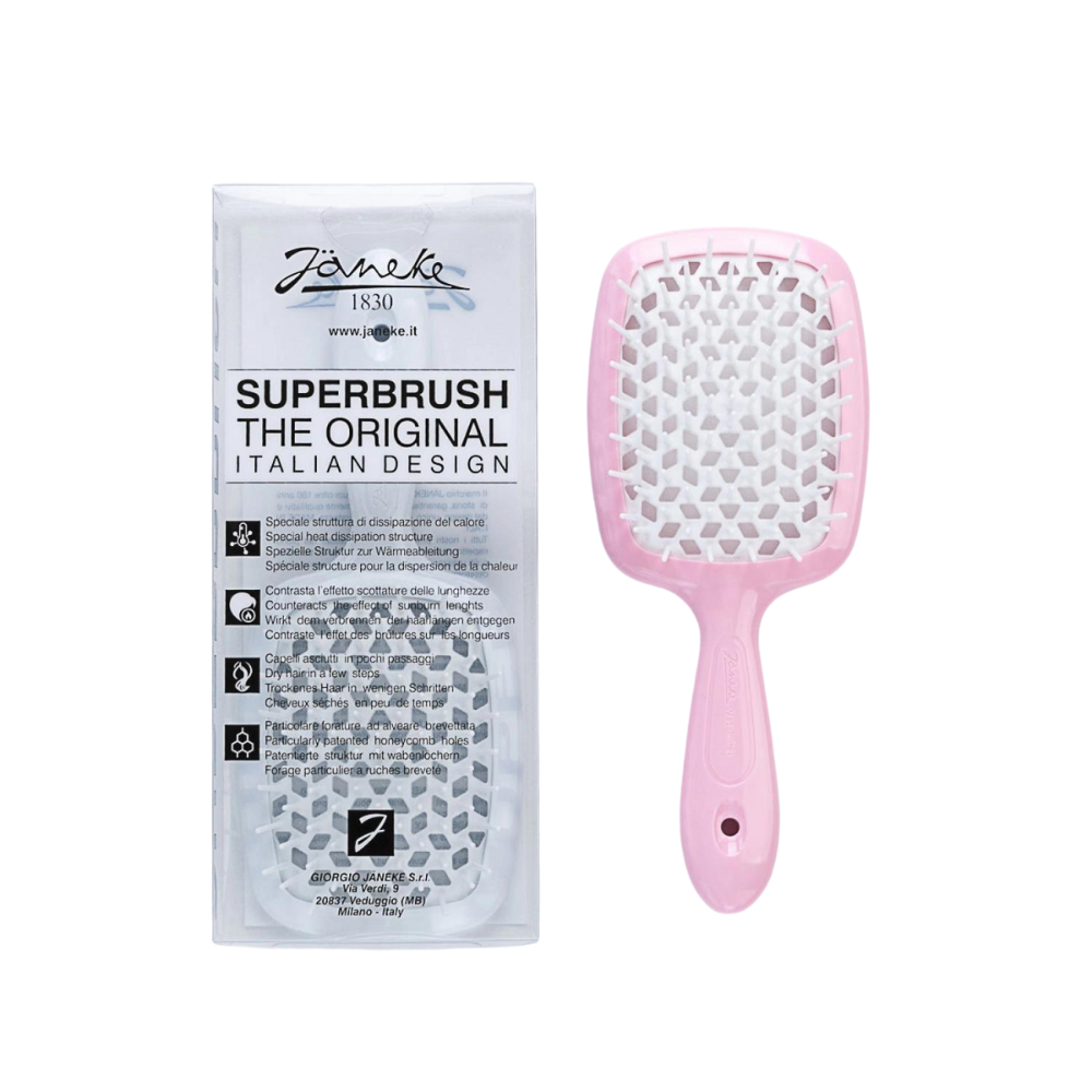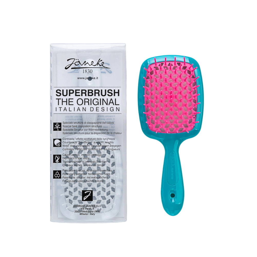 The unique beehive-patterned perforation ensures safe blow-drying by preventing heat damage. Available in a variety of vibrant colours, the Janeke Superbrush is destined to become your favourite hair accessory.