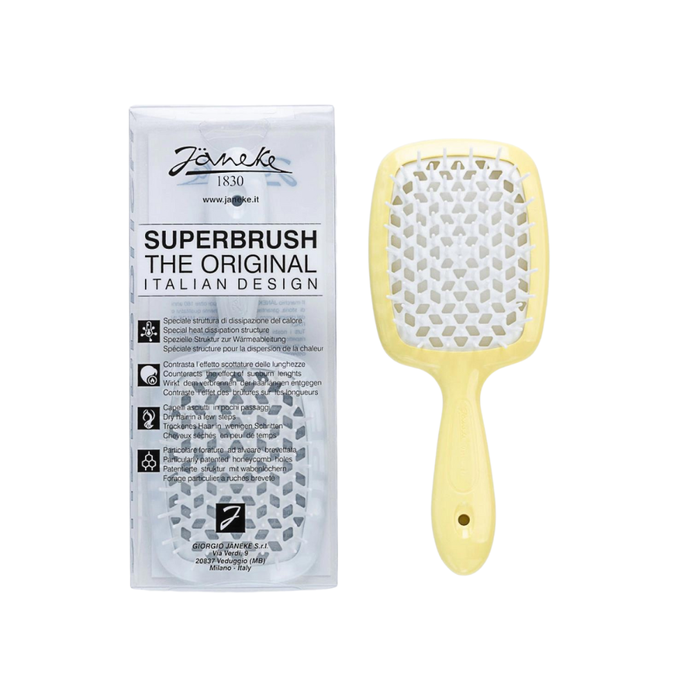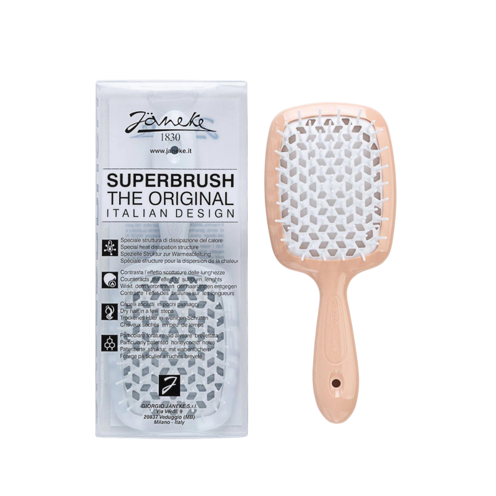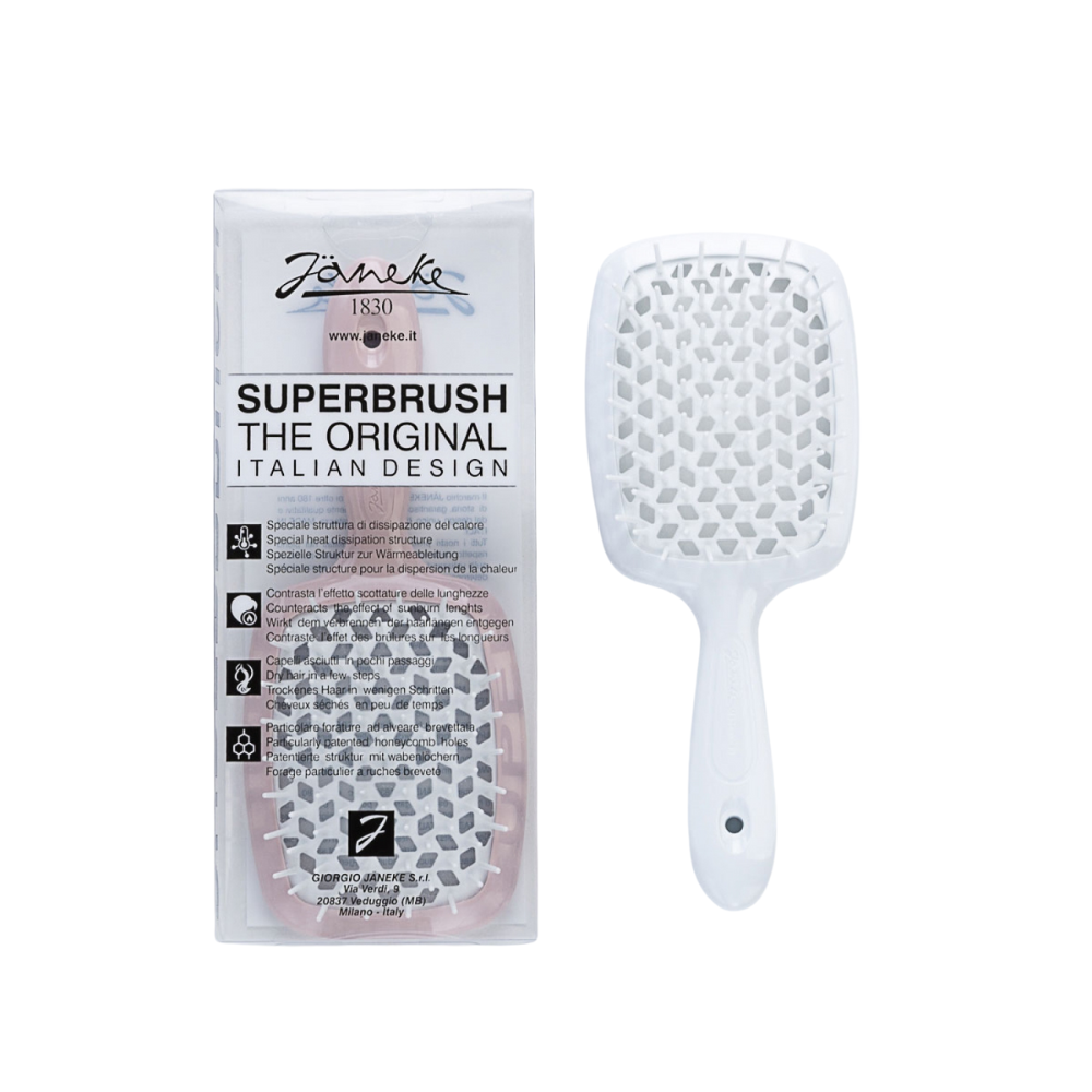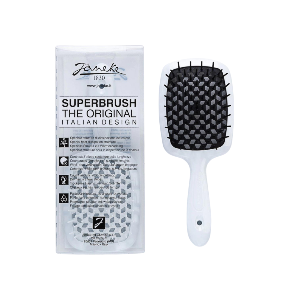 The unique beehive-patterned perforation ensures safe blow-drying by preventing heat damage. Available in a variety of vibrant colours, the Janeke Superbrush is destined to become your favourite hair accessory.