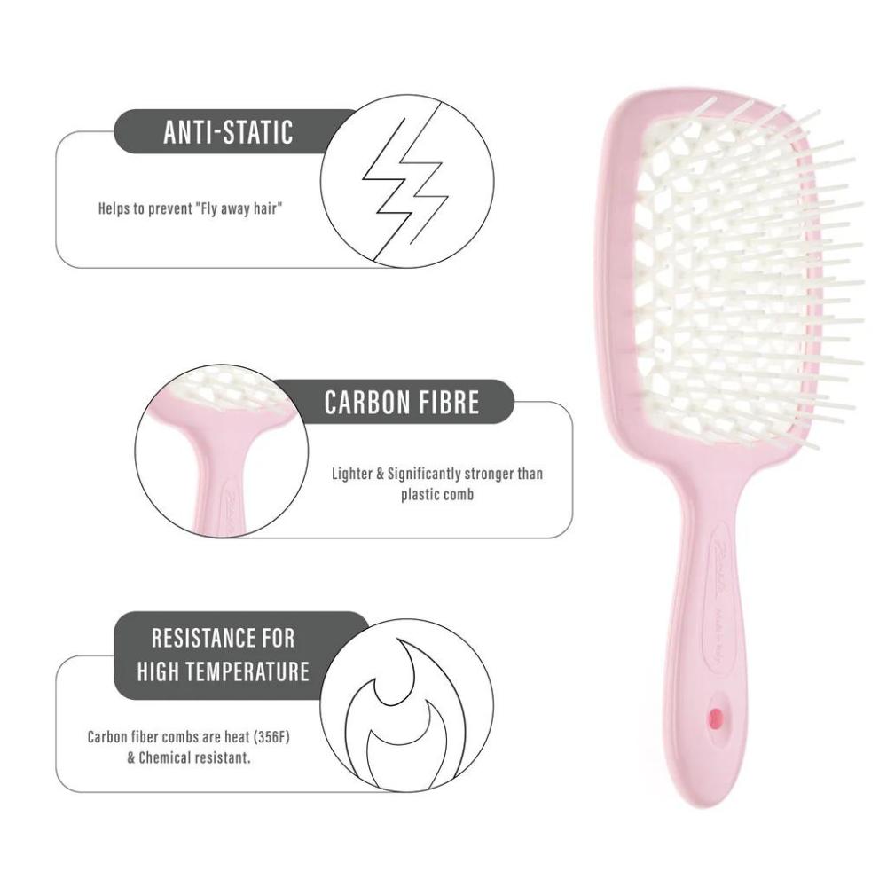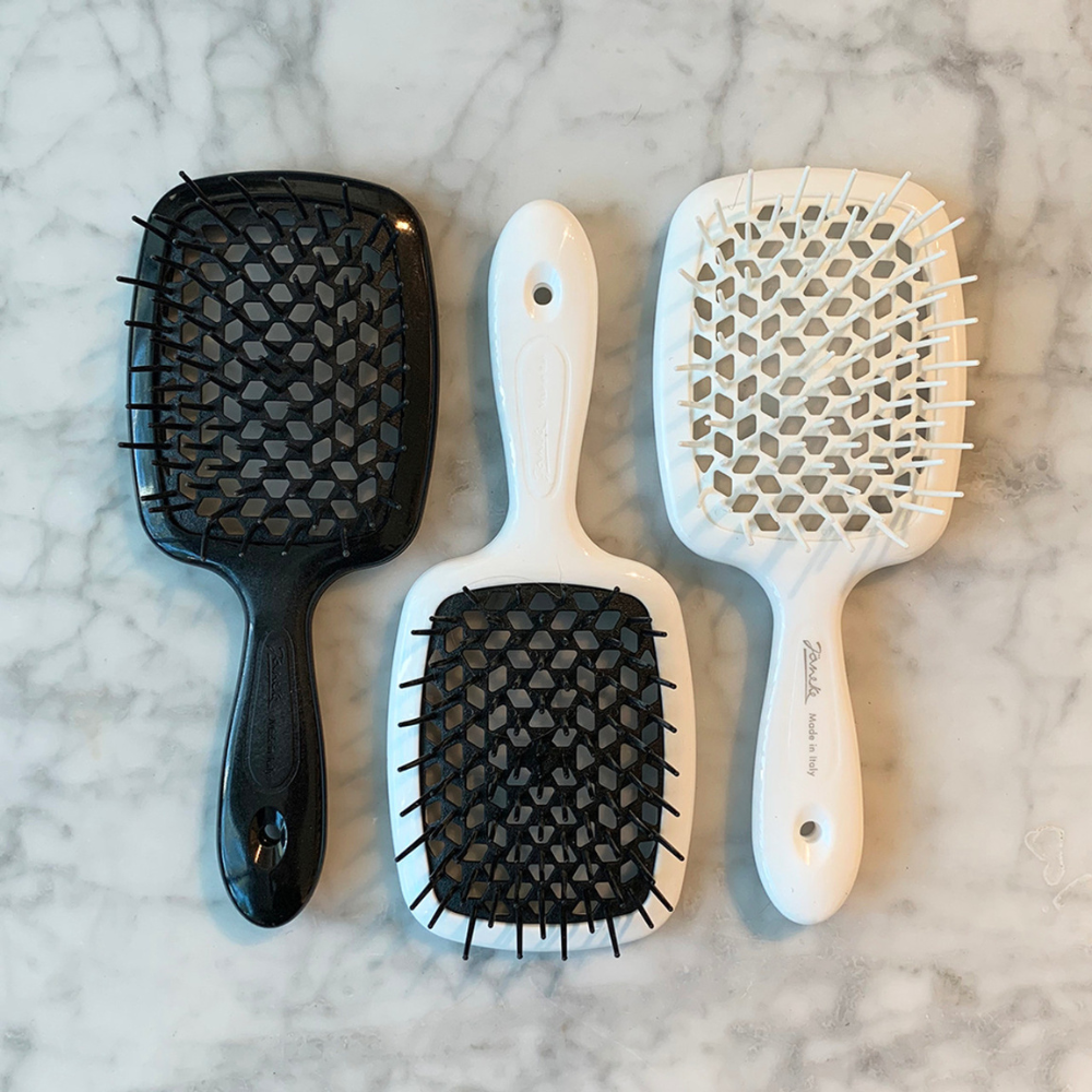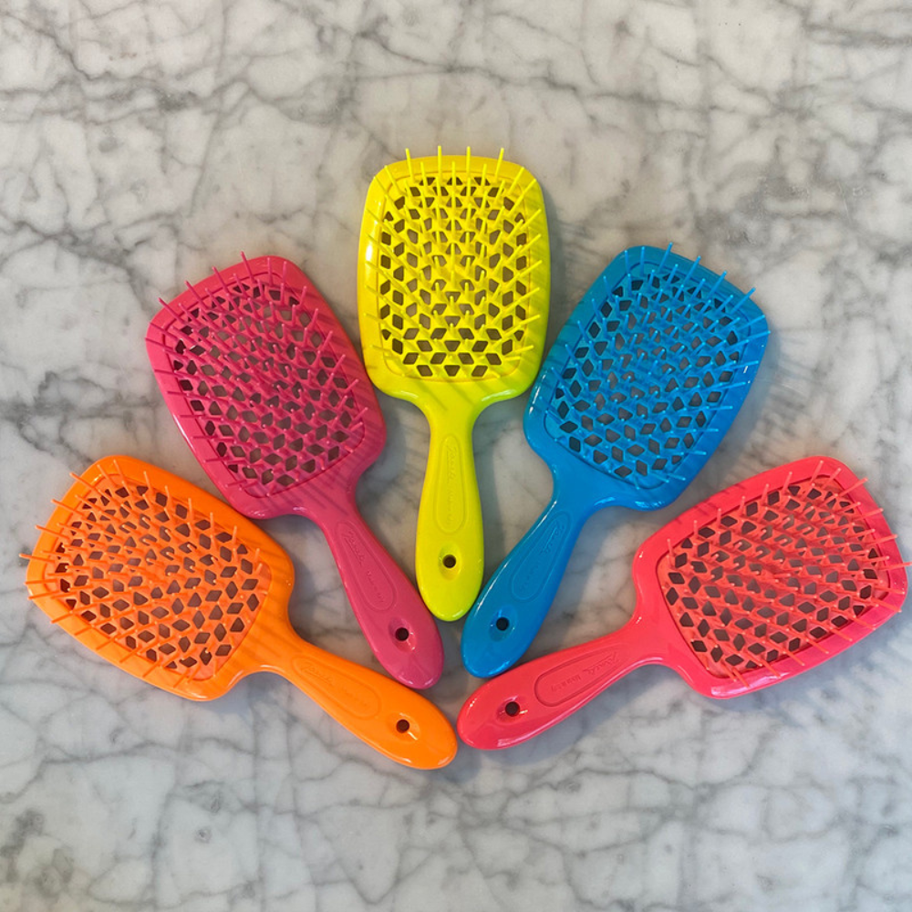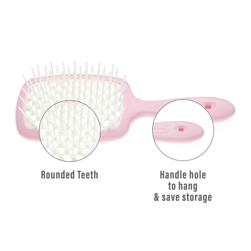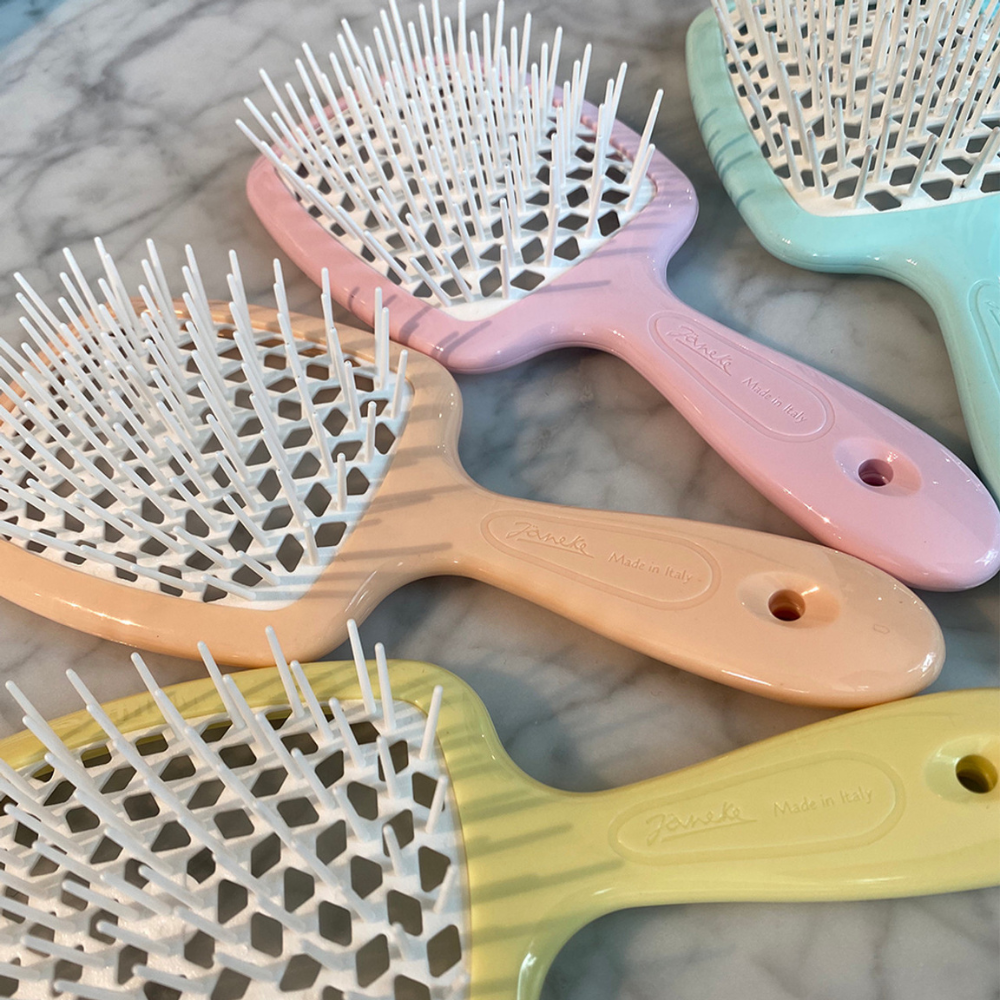 The unique beehive-patterned perforation ensures safe blow-drying by preventing heat damage. Available in a variety of vibrant colours, the Janeke Superbrush is destined to become your favourite hair accessory.