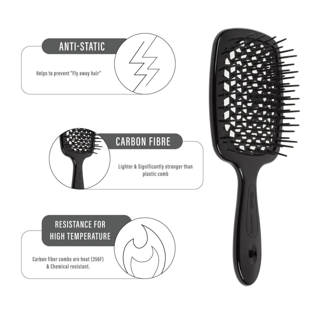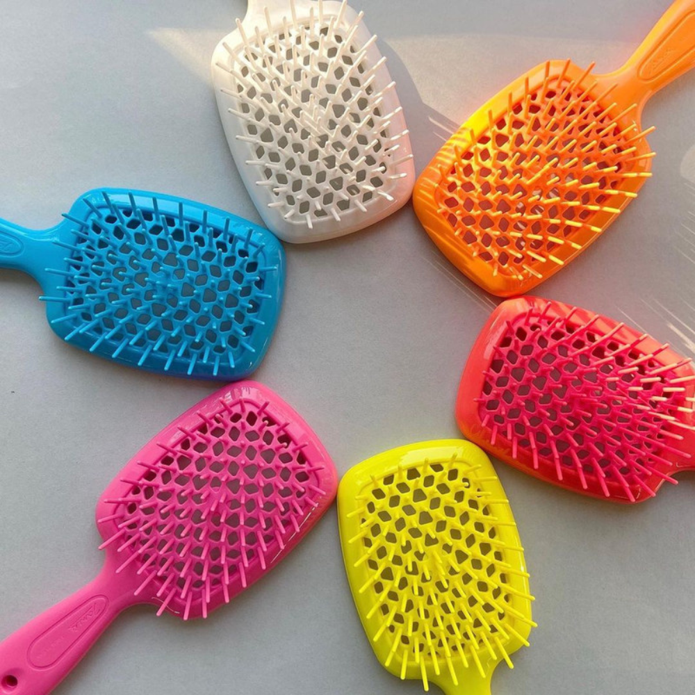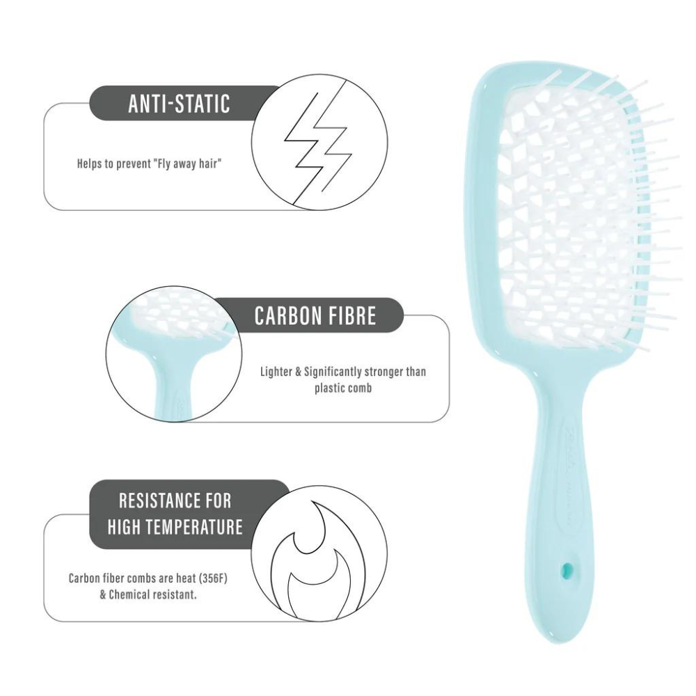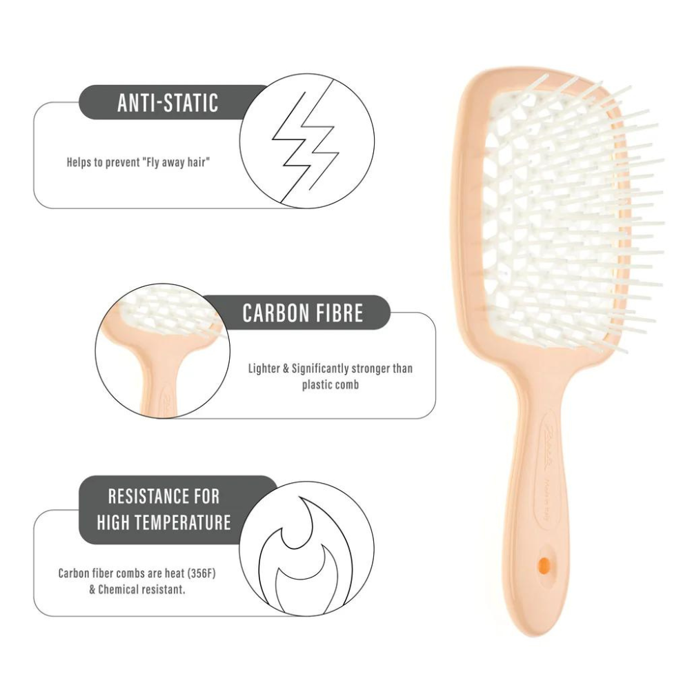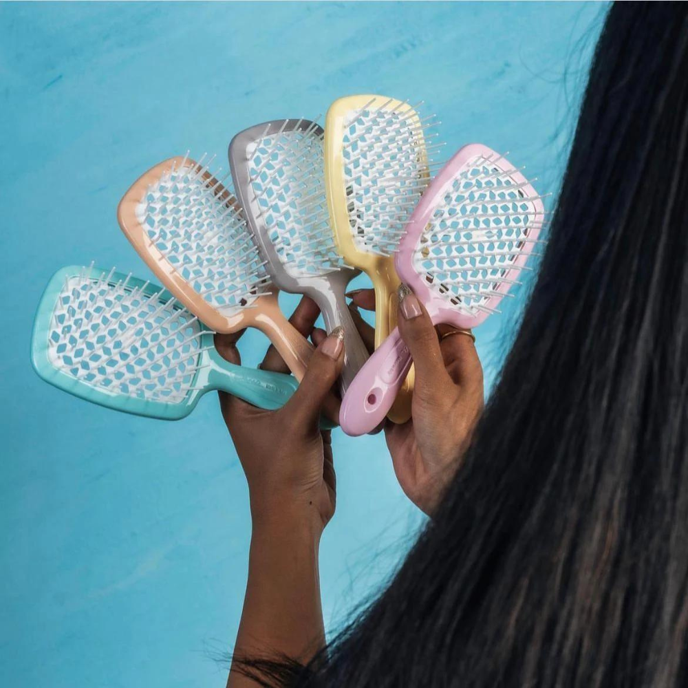 The unique beehive-patterned perforation ensures safe blow-drying by preventing heat damage. Available in a variety of vibrant colours, the Janeke Superbrush is destined to become your favourite hair accessory.