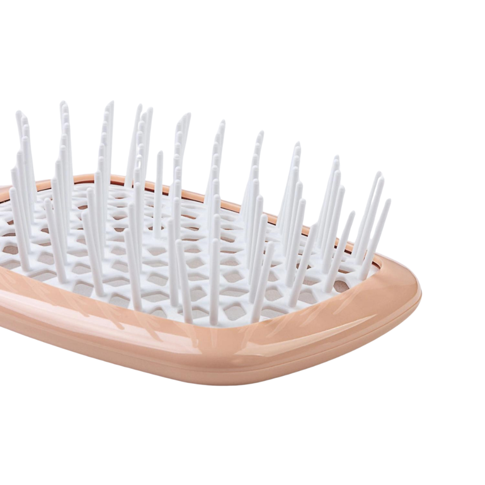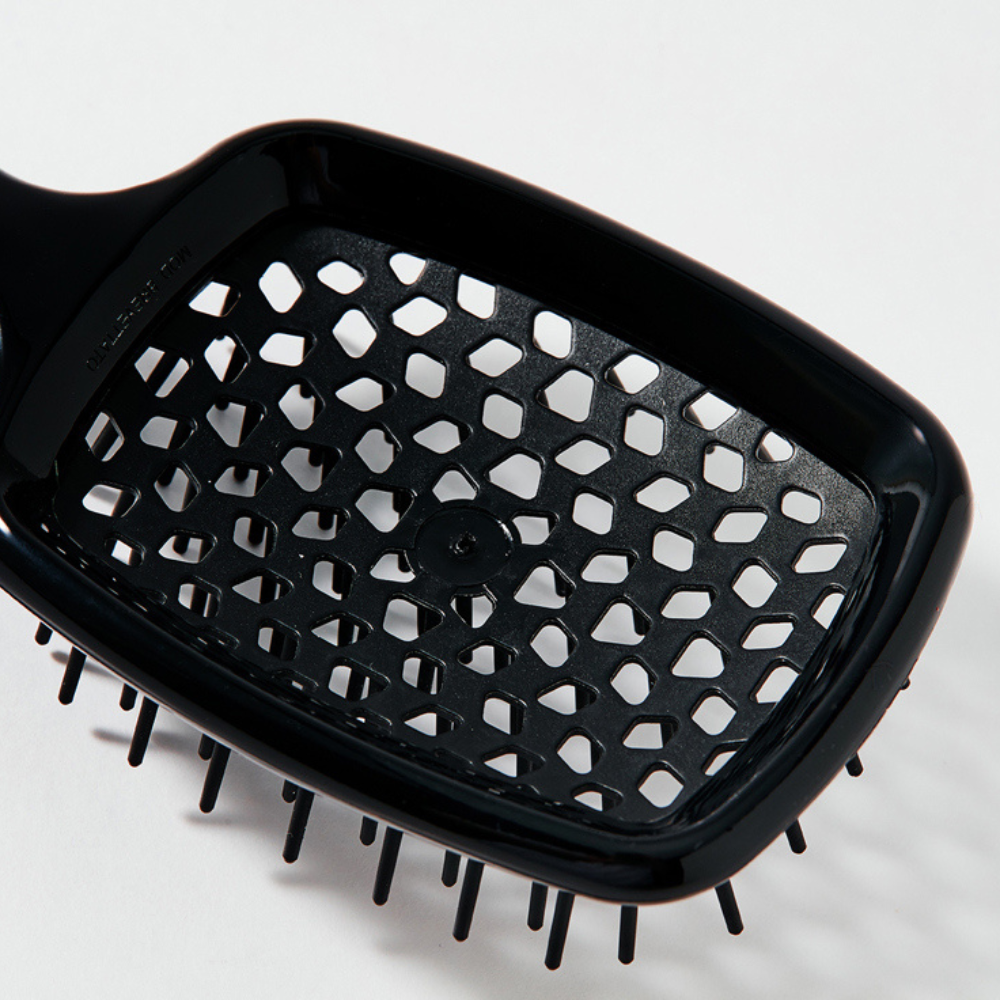- When blow-drying, position the brush so that the hot air flows through the perforated back, ensuring even heat distribution and preventing hair damage.