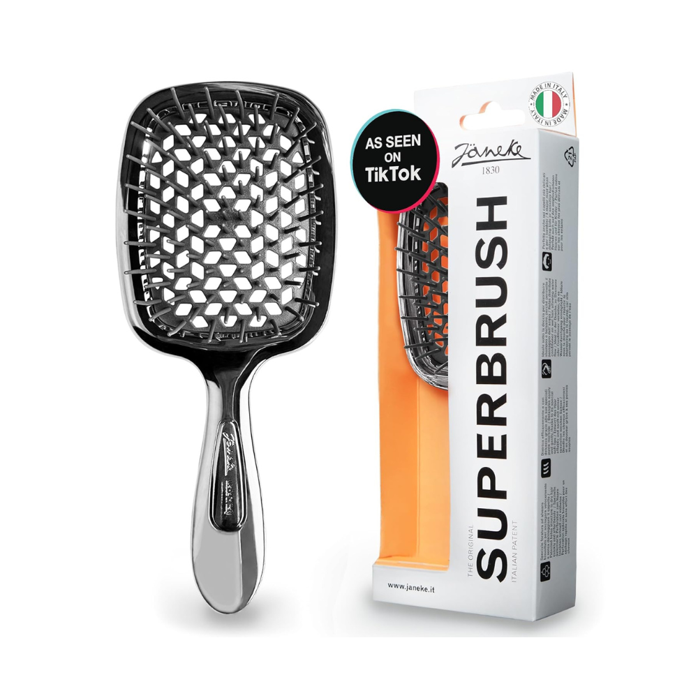 The Janeke The Superbrush is a legendary hairbrush from a brand that has been crafting high-quality hair accessories since 1830. Designed to work with all hair types—whether thin, thick, wavy, or even creased—the Superbrush detangles gently and effectively.
