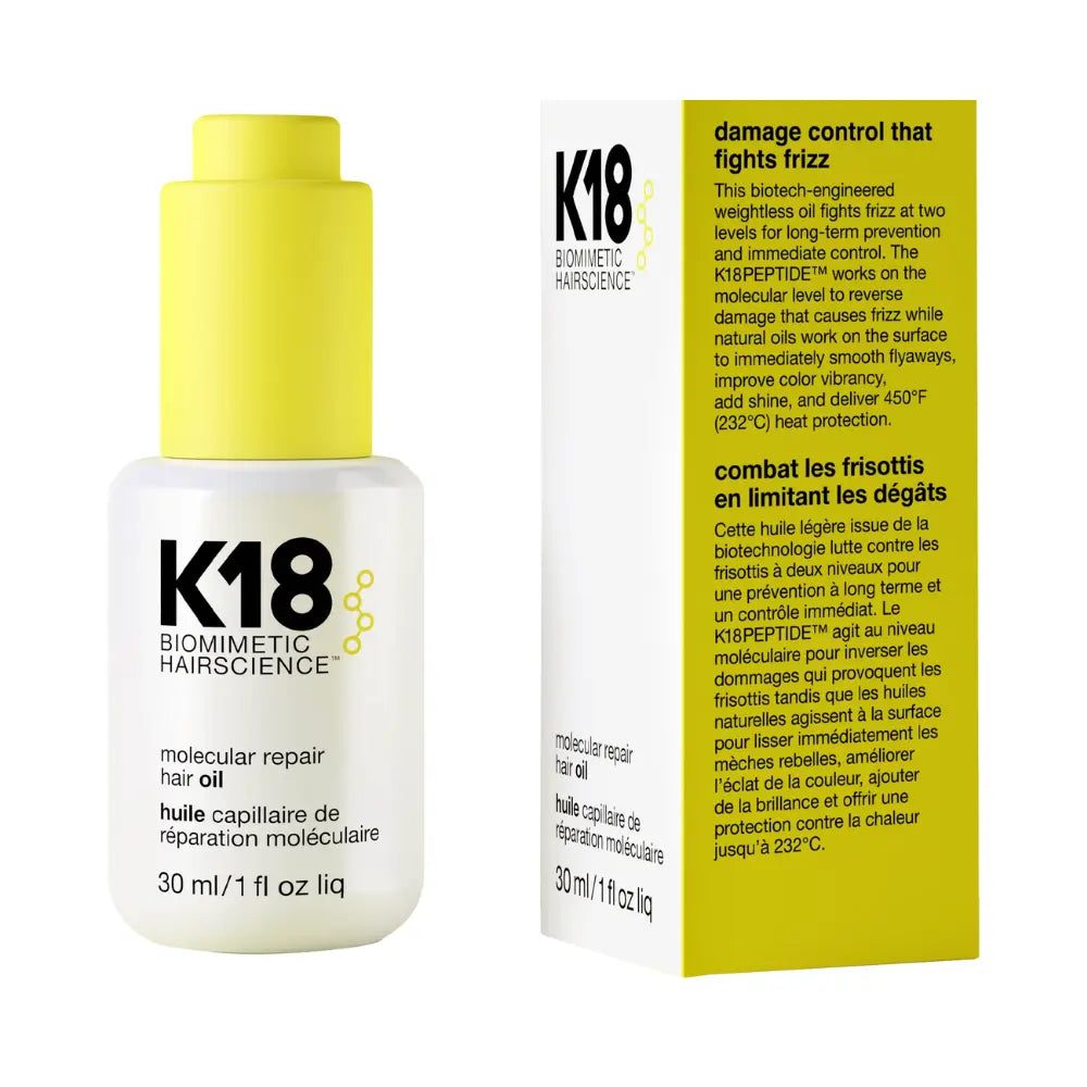 Not only does K18 Molecular Repair Oil repair damaged and split ends, it also helps to reduce frizziness and make hair more manageable. It transforms lifeless, brittle, and damaged hair into smooth, shiny, and healthy hair.