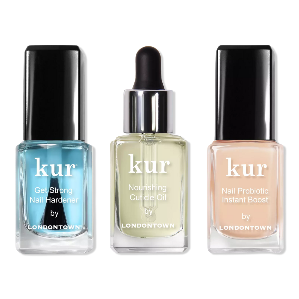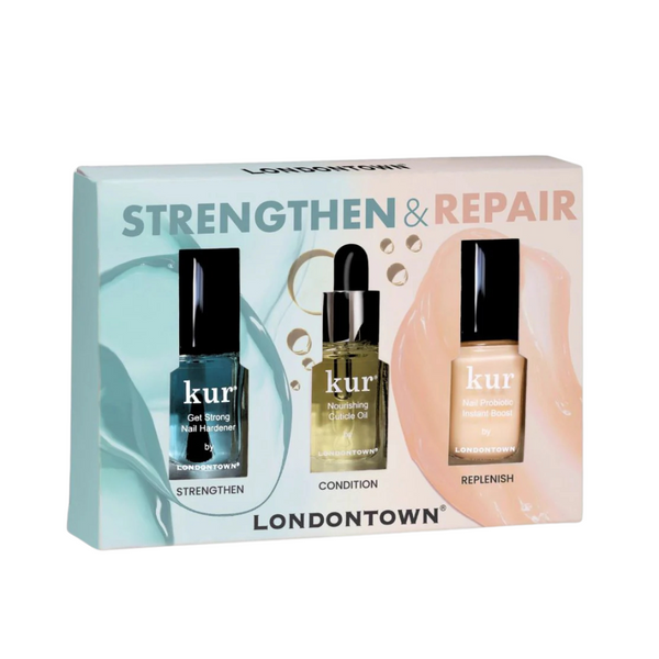 Transform your nails with the Londontown Strengthen & Repair Trio, a collection of targeted solutions designed to help you achieve your strongest, longest, most resilient nails yet. This expertly curated set features the Get Strong Nail Hardener, formulated with innovative multipolymer technology that works to restructure the keratin matrix, ensuring enhanced durability and resilience.