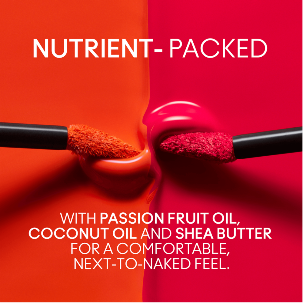 This innovative liquid lipstick is enriched with nourishing ingredients like passion fruit oil, coconut oil, and shea butter, ensuring comfortable wear without compromising on performance. The precision applicator features a tapered tip for expert application, allowing for controlled coverage and defined edges without bleeding or feathering.