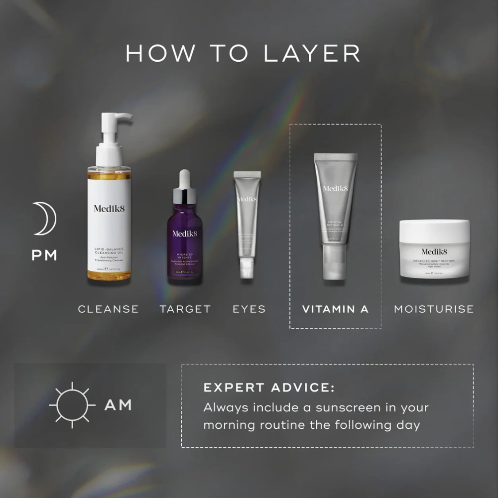 Paired perfectly with Medik8 Crystal Retinal Eye cream, which targets crow's feet, puffiness and dark circles while delivering sustained moisture throughout the night.