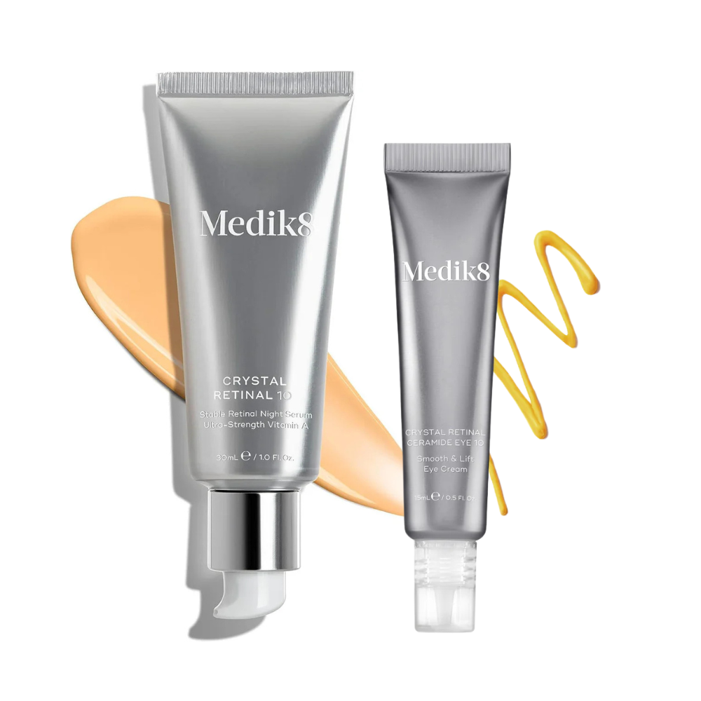 Elevate your anti-ageing skincare routine with the Medik8 Crystal Retinal Face & Eye Set. This duo harnesses the power of retinal, a next-generation form of vitamin A that works up to 11 times faster than traditional retinol.