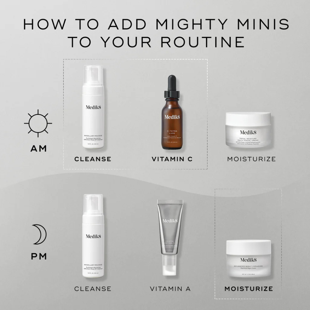 Experience the power of Medik8's most-loved formulas on-the-go with the Mighty Minis Collection.