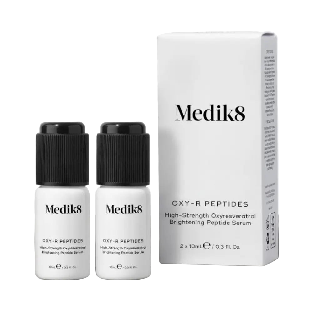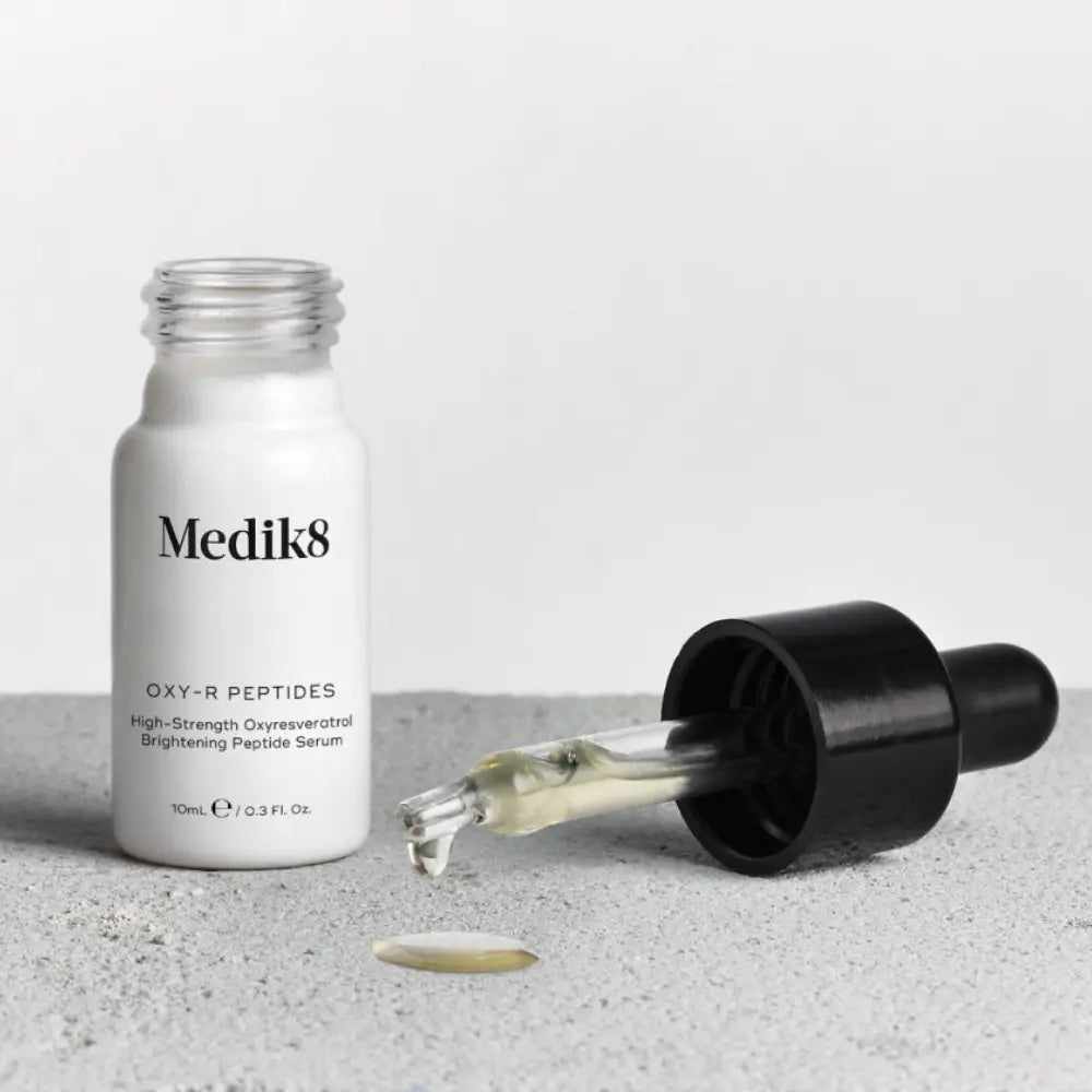 Medik8 Oxy-R Peptides is a revolutionary treatment that brightens dark spots and fades pigmentation for healthy, even-toned skin.