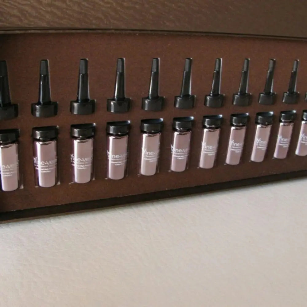 2. Evening Repair: After cleansing, open one vial of Vine Vera Resveratrol Cabernet Hi Potency Night Serum and apply to face and neck.