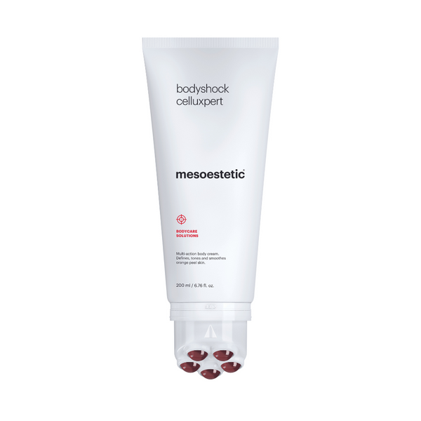 Mesoestetic Bodyshock Celluxpert is a state-of-the-art cream-gel designed to tackle the challenges of cellulite, offering a targeted approach to visibly improve skin irregularities.