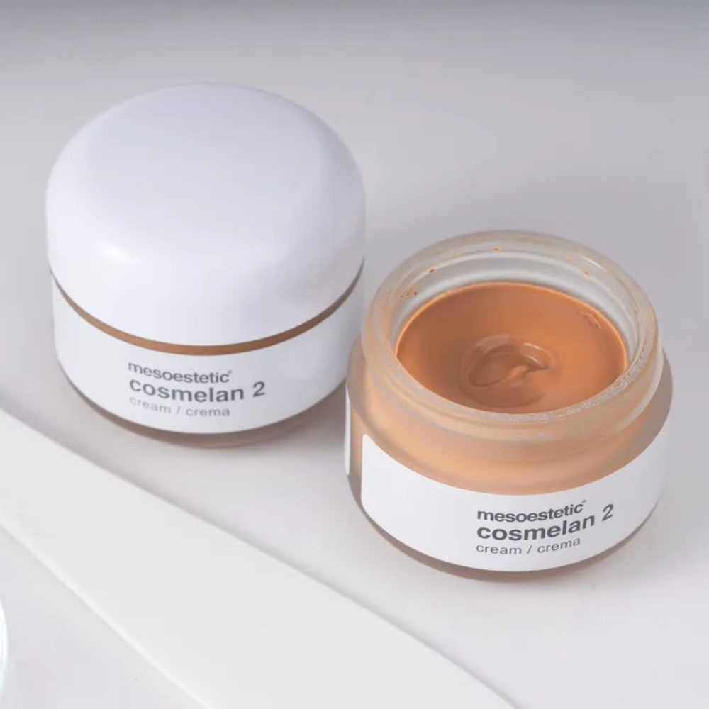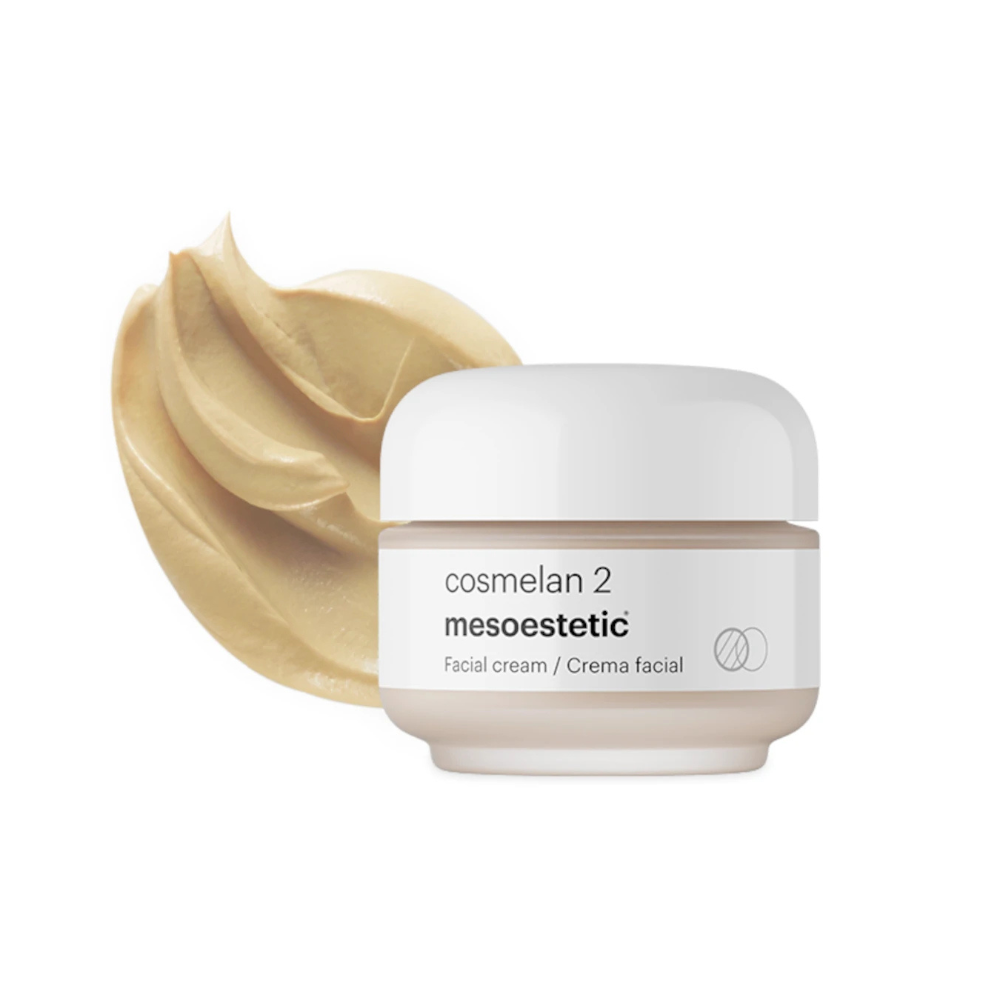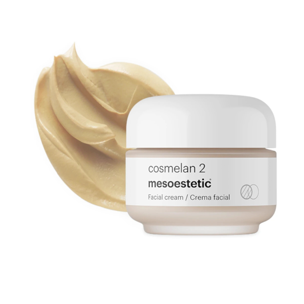 Mesoestetic Cosmelan 2 is a home cream whose main action is the attenuation and control of facial blemishes of melanic origin. It continuously attenuates the spots and regulates the overproduction of melanin, preventing their reappearance in the long term. This powerful formula is indicated to complete the depigmenting action of the cosmelan® aesthetic-professional method.