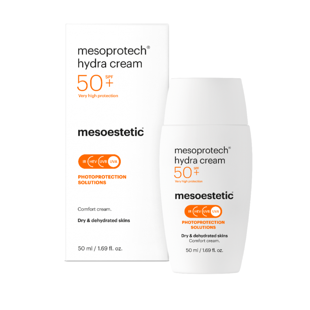 Mesoestetic Mesoprotech Hydra Cream SPF50+ is the perfect solution for dry and dehydrated skin who need powerful sun protection without compromising on comfort. This facial sunscreen delivers very high photoprotection with SPF50+, making sure that your skin stays shielded from harmful UV rays while receiving the hydration it craves.