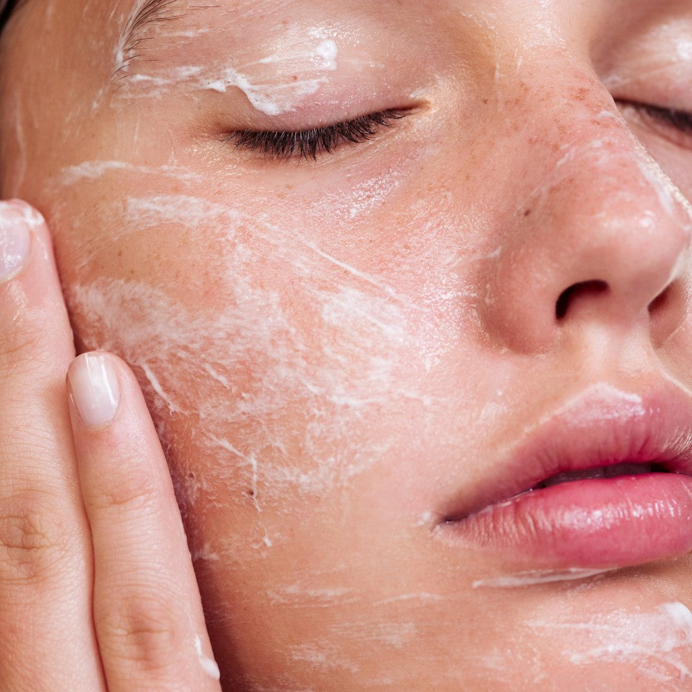 - Apply a small amount of cleanser to wet hands and massage into the skin in circular motions.