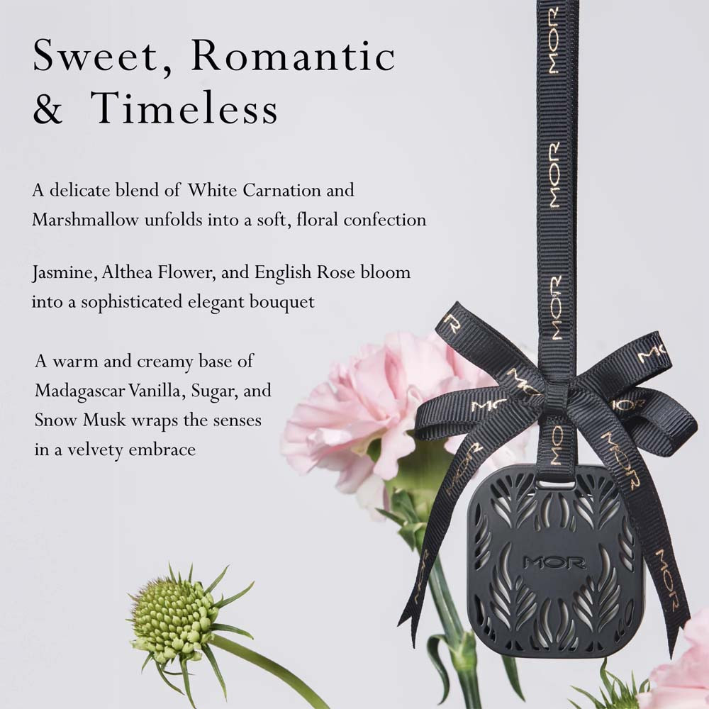 - Features MOR's iconic Marshmallow fragrance with White Carnation, Jasmine, English Rose, and Snow Musk for sophisticated elegance