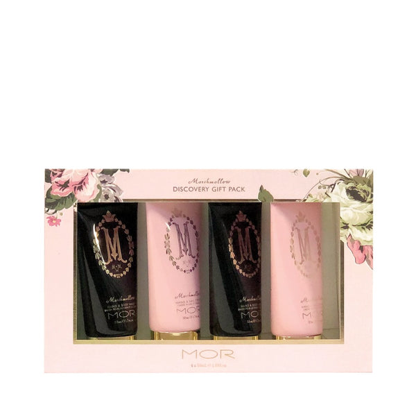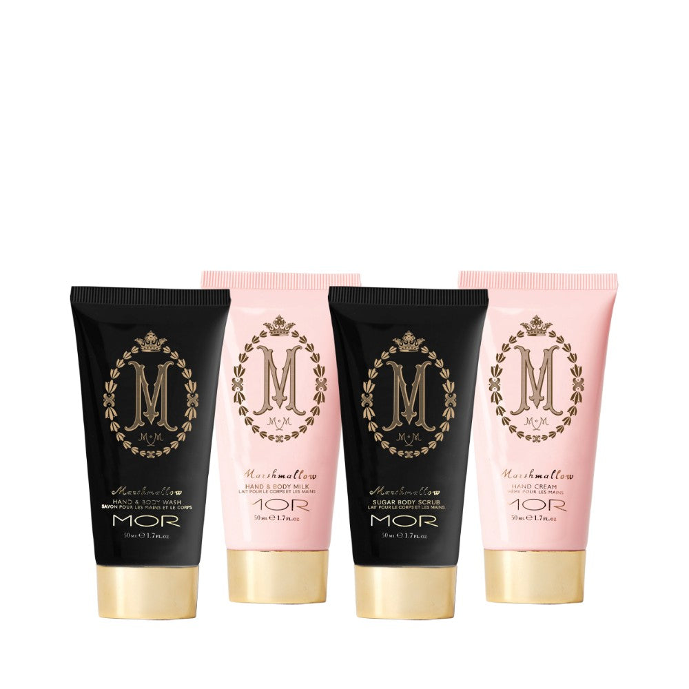Experience a moment of pure indulgence with the MOR Marshmallow Discovery Kit. This set of four beautifully scented bath and body essentials comes in convenient 50ml sizes, perfect for luxurious pampering at home or on-the-go. The kit features MOR's best-selling Hand & Body Wash, Hand & Body Milk, Body Scrub, and Hand & Nail Cream, all infused with the delightful marshmallow fragrance.