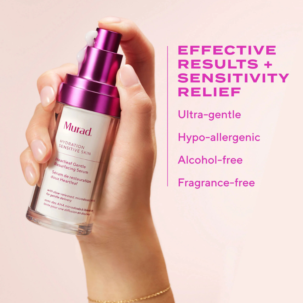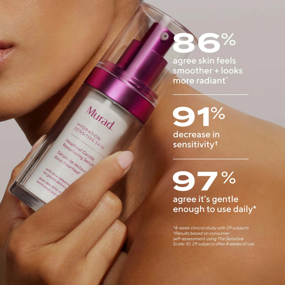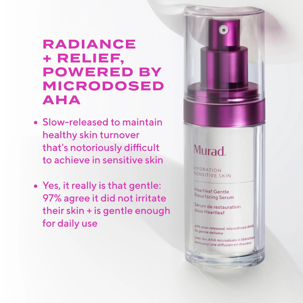 Murad Heartleaf Gentle Glycolic Acid Resurfacing Serum is an innovative solution for sensitive skin that craves gentle exfoliation. This ultra-gentle formula features a precisely microdosed concentration of glycolic acid that works in harmony with soothing ingredients to improve skin radiance without triggering sensitivity.