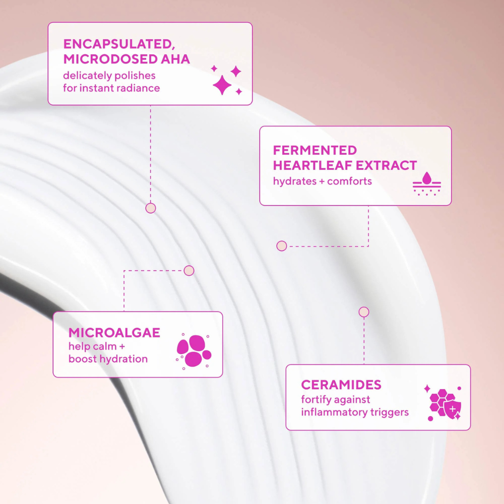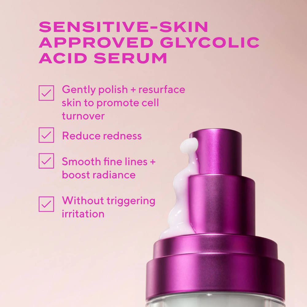 - Gently resurfaces sensitive skin with microdosed glycolic acid for improved radiance
