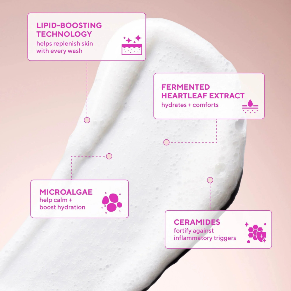 The innovative formula features Heartleaf extract, known for its calming properties, alongside barrier-supporting ingredients that work in harmony to reduce visible signs of sensitivity. Perfect for daily use, this non-stripping cleanser helps build skin resilience while providing immediate comfort to irritated skin.